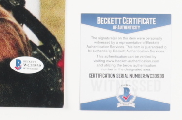 The lot / autograph(s) includes an official Beckett Authentication Services serially-numbered hologram and matching COA for authenticity purposes. The signing of this item was witnessed by Beckett.