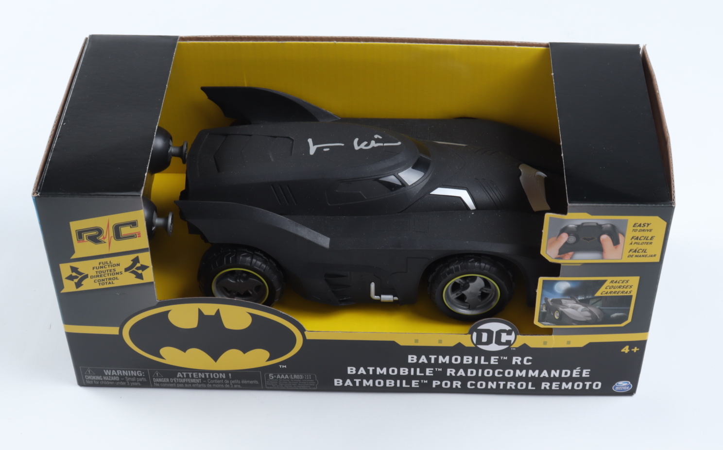 Spin Master DC Comics "Batman" Batmobile RC car has been hand-signed by Val Kilmer (Bruce Wayne / Batman).