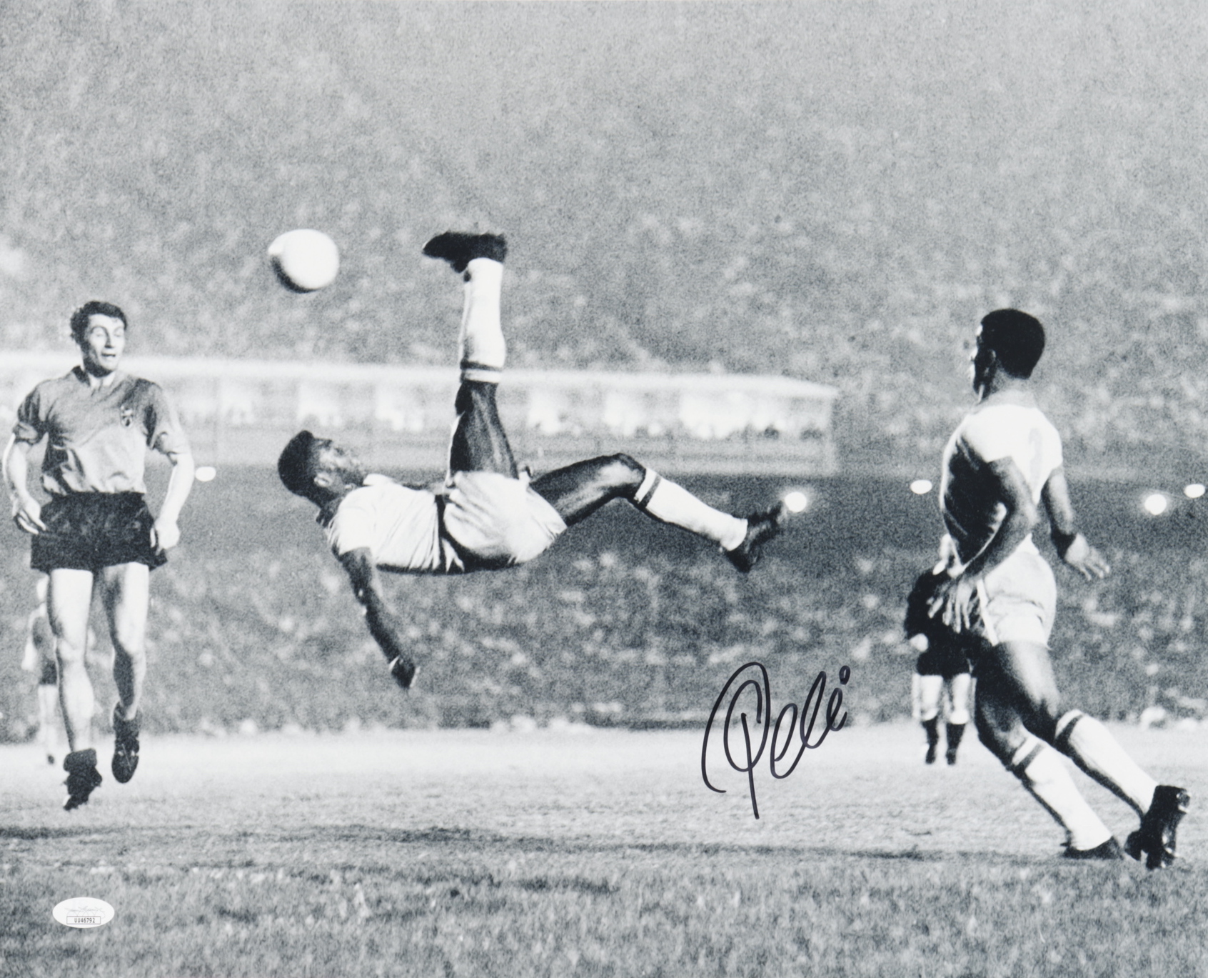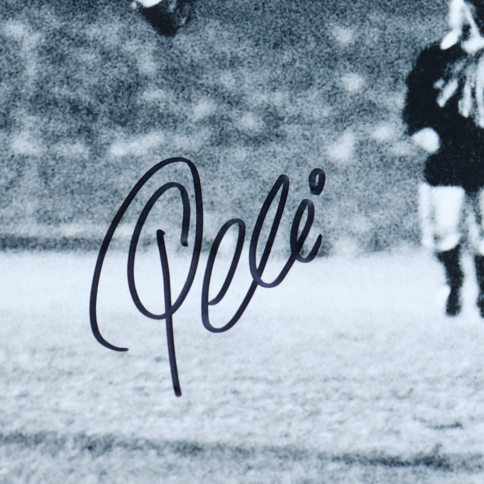 Photo measures 16" x 20" in size and has been hand-signed by Pele (HOF).