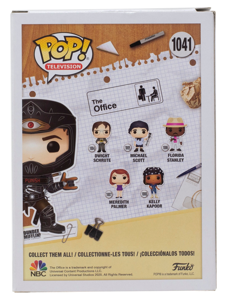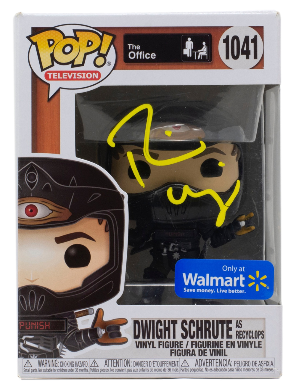 Vinyl figure measures approximately 4" tall. Hand-signed on the packaging by Rainn Wilson (Dwight Schrute).