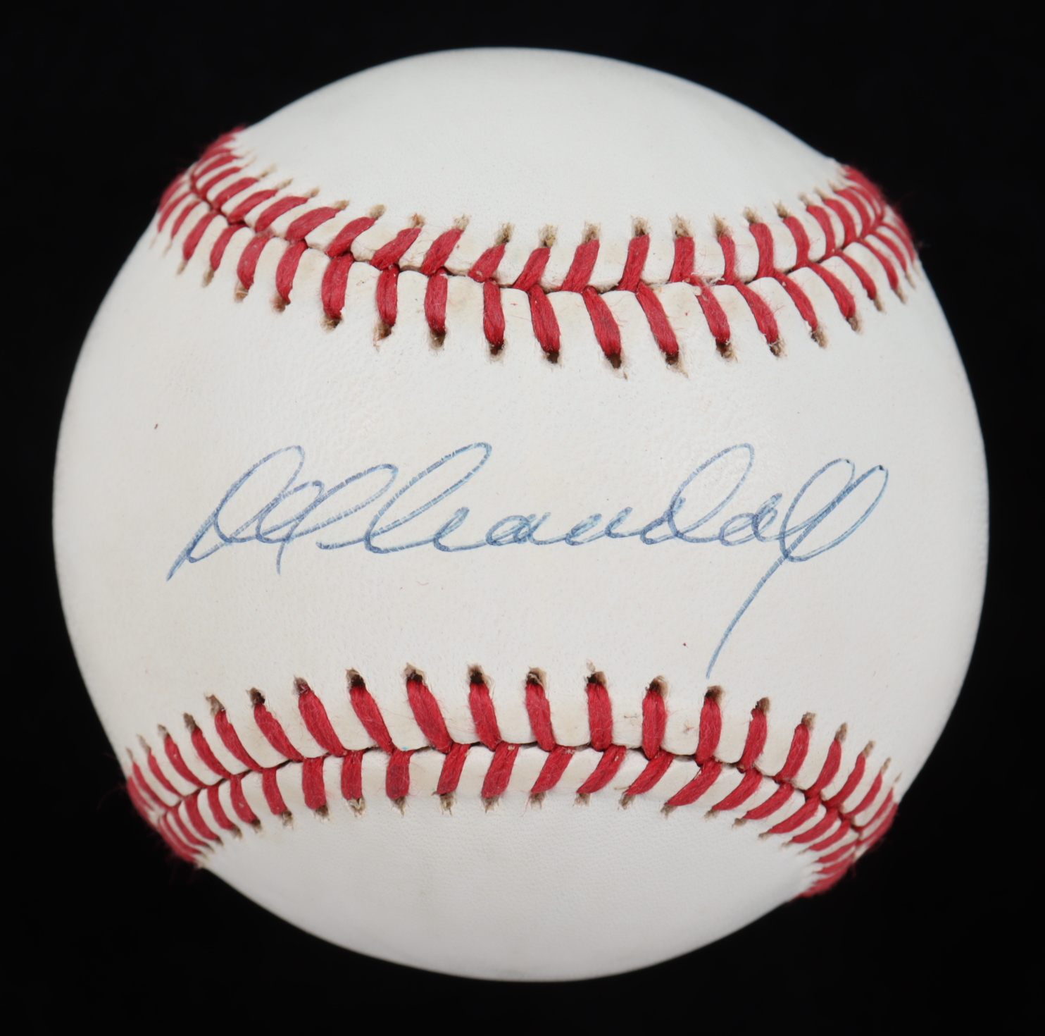 Rawlings Official National League Baseball. Has been hand-signed by Del Crandall (D. 2021, Atlanta Braves). Please note, the baseball shows signs of natural toning.