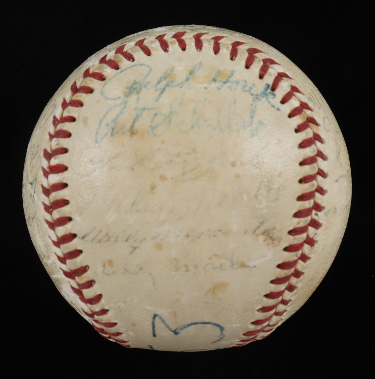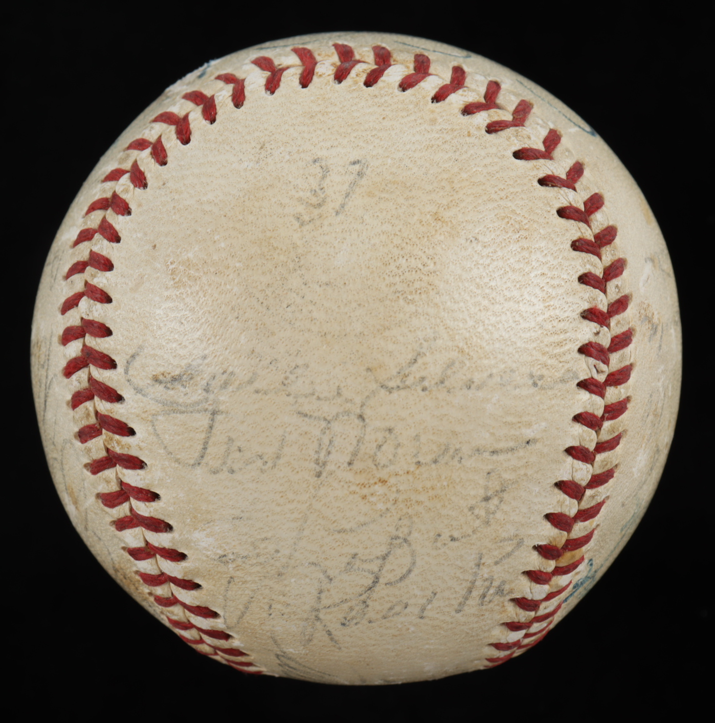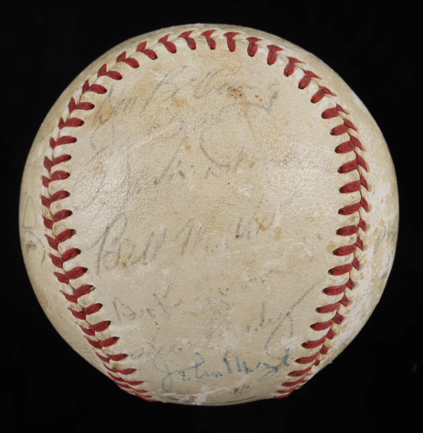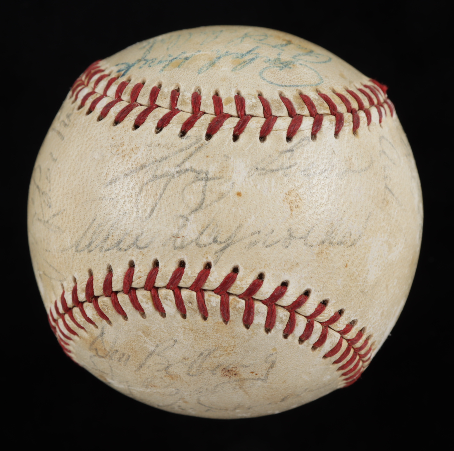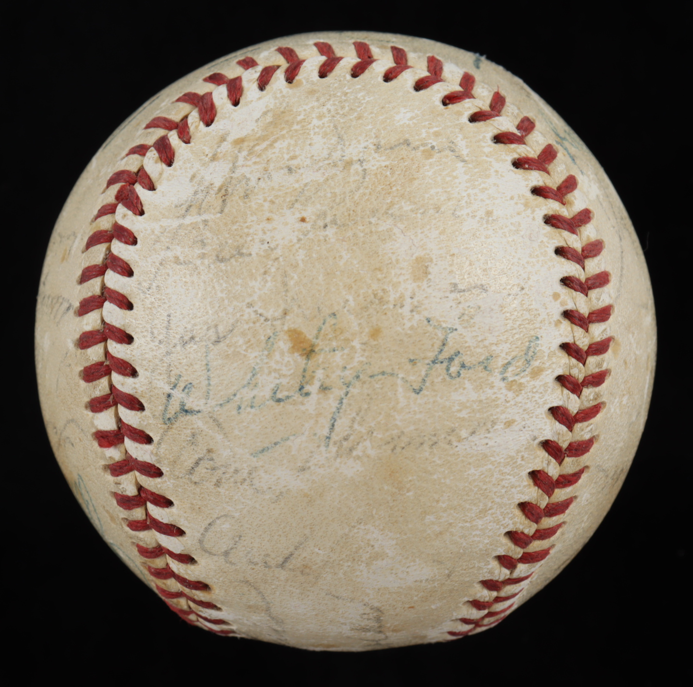 Baseball has been team-signed by (25) including Mickey Mantle, Yogi Betta, Whitey Ford, Allie Reynolds, Ralph Houk, Art Schult, Johnny Mize, Bill Miller, Phil Rizzuto, Don Bollweg, Irv Noren and (14) others. Please note, baseball shows signs of natural toning.