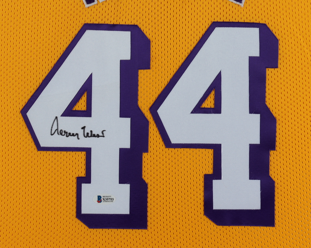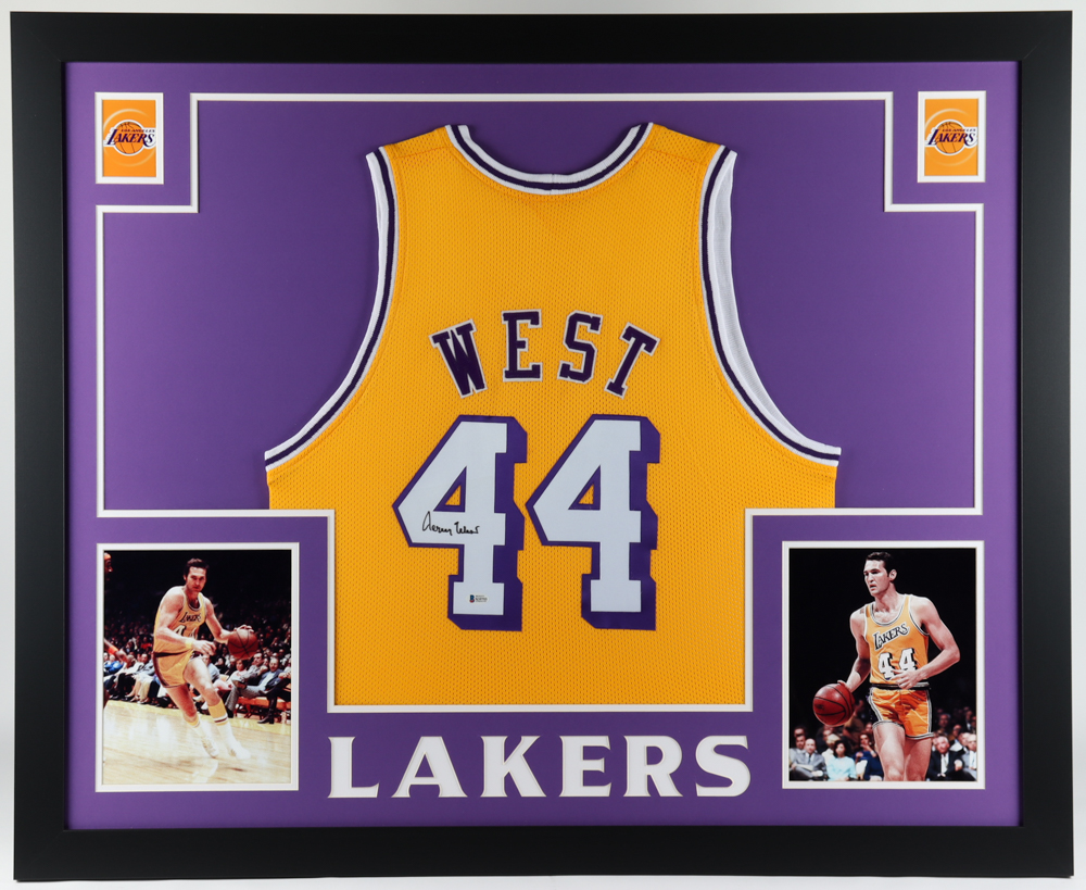 Custom frame measures 35" x 43" in size and features a jersey hand-signed by Jerry West (HOF).