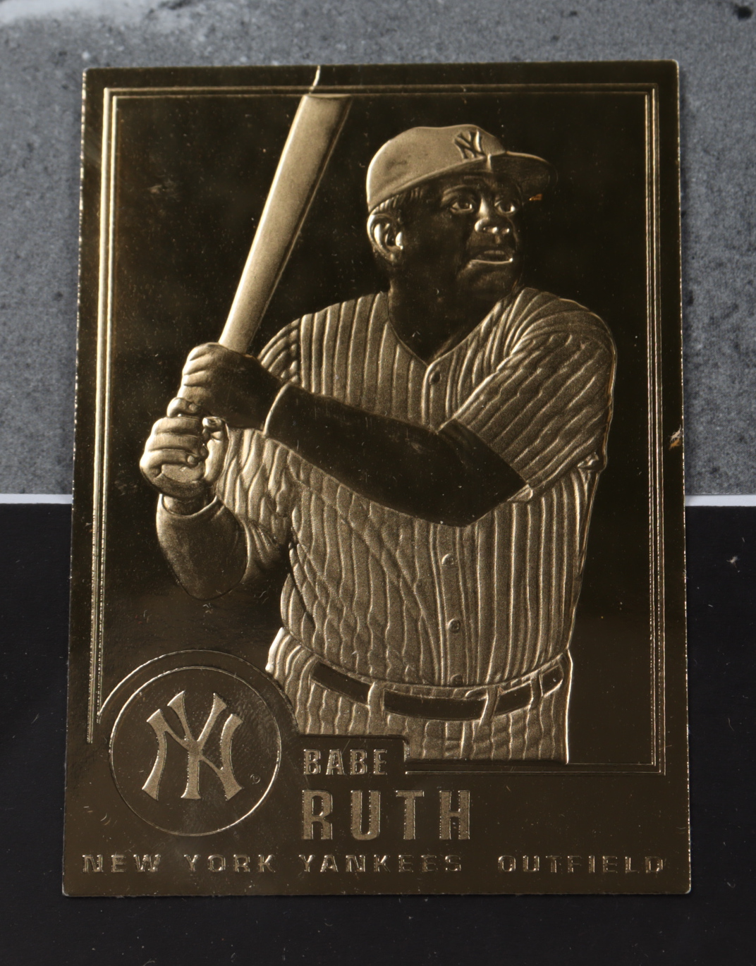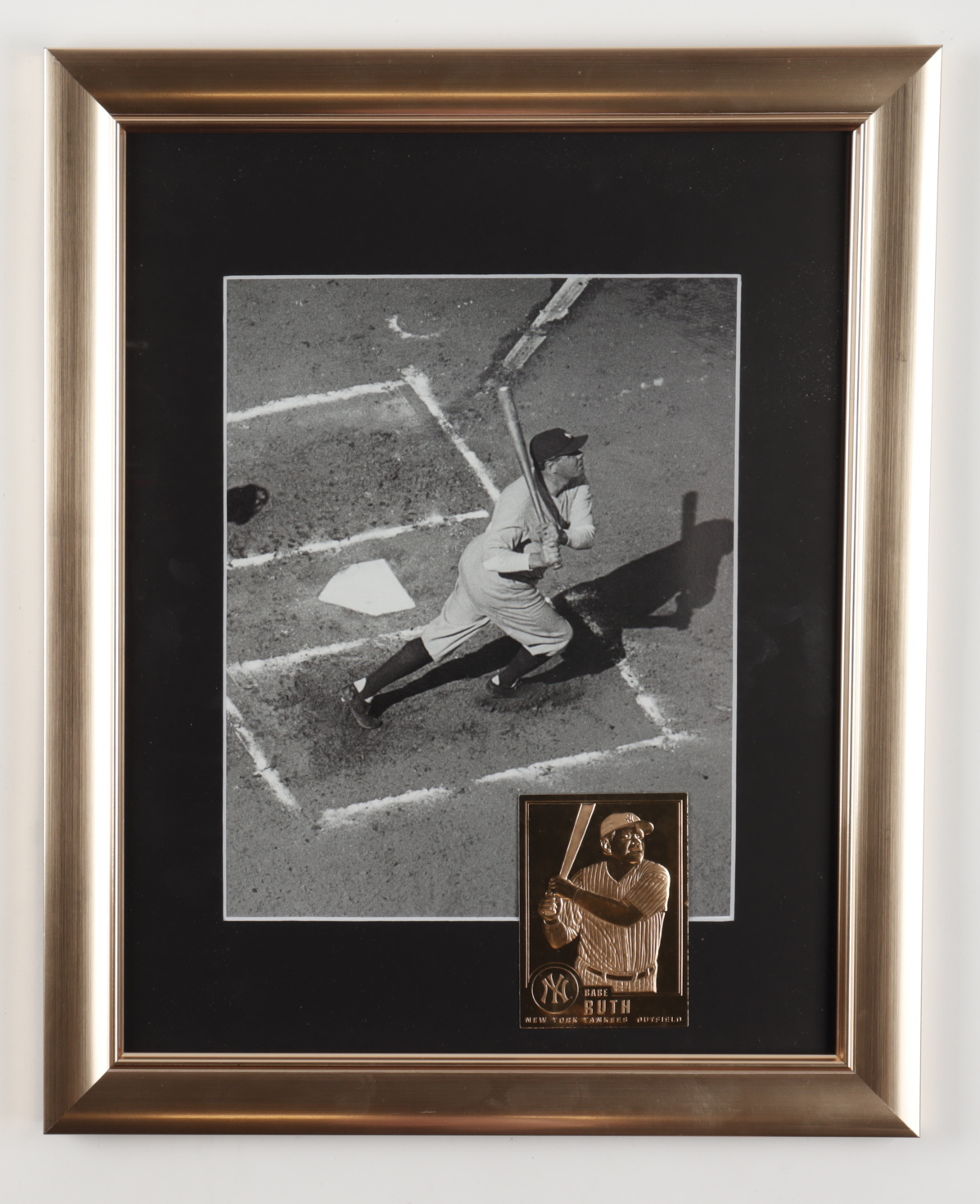 Custom framed display measures 13" x 16" in size and features a photo of Babe Ruth (D. 1948, HOF). The display also includes a 23kt gold card.