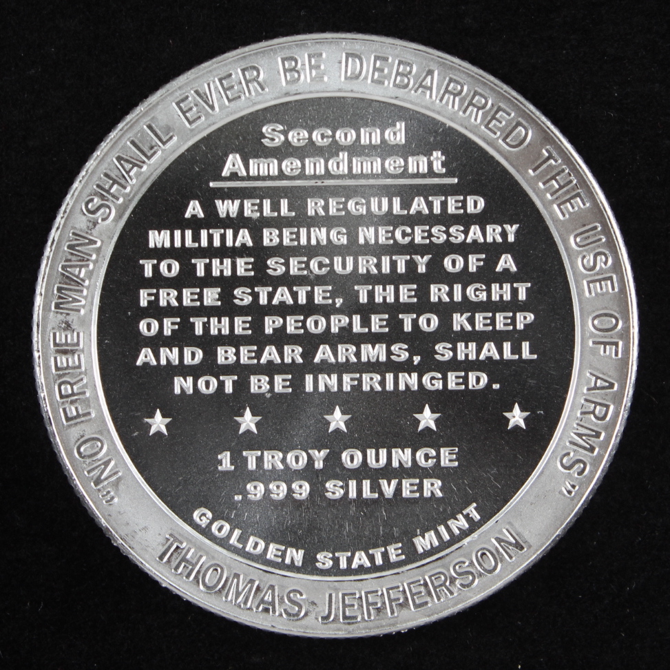 1 Troy oz .999 The Second Amendment Golden State Mint Silver Bullion Round