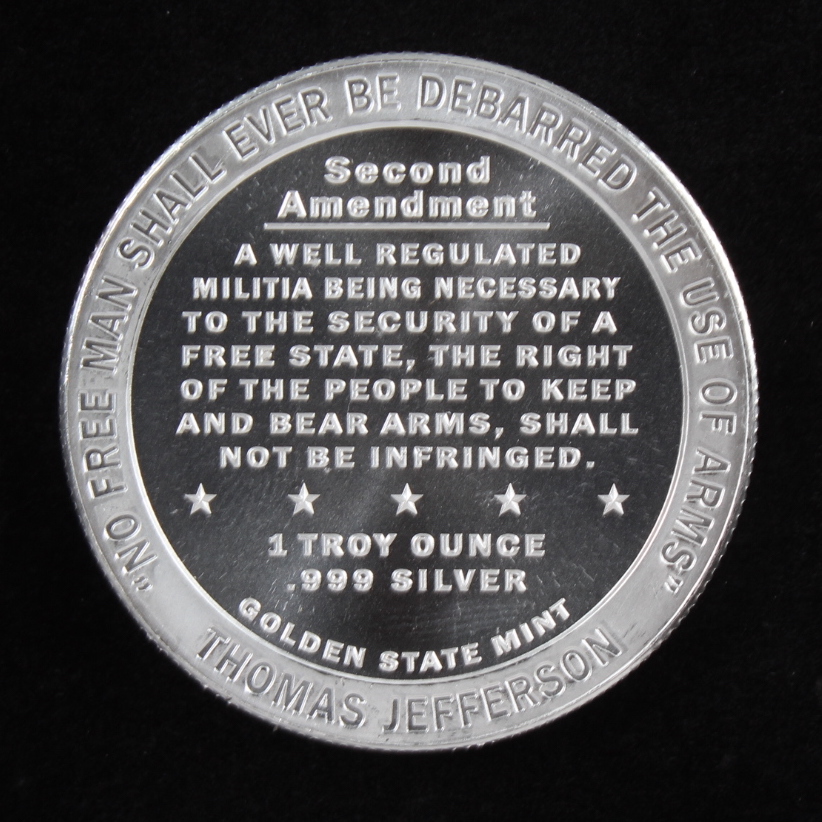1 Troy oz .999 The Second Amendment Golden State Mint Silver Bullion Round