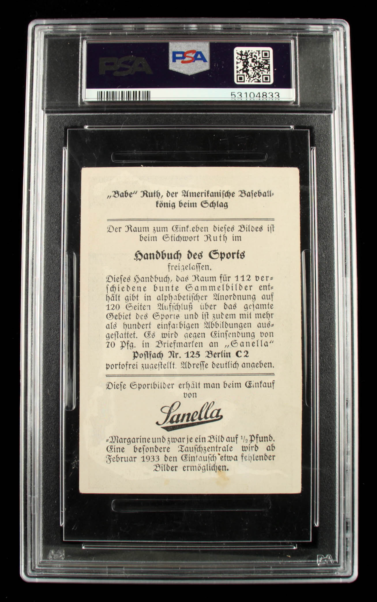 Babe Ruth 1932 Sanella Margarine #83B Type 2 / Sanella at Bottom (PSA 1.5)