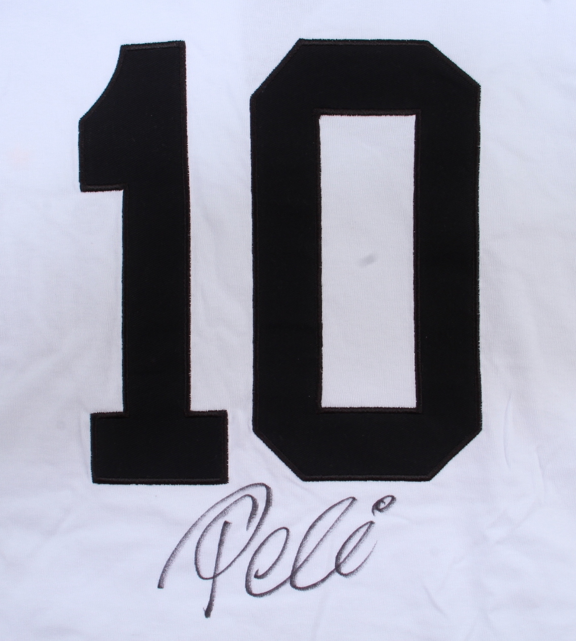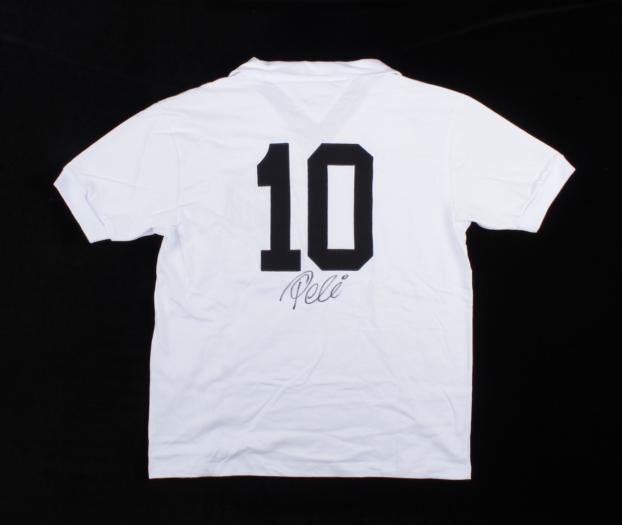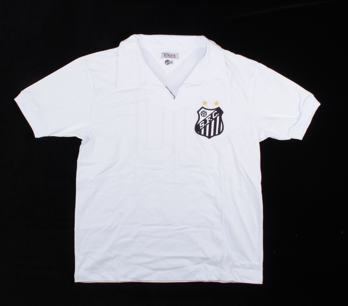Athleta on-field style jersey. Everything is sewn on, size XL. Hand signed by Pele (Santos F.C., HOF). Please note, there are signs of staining on the front of the jersey.