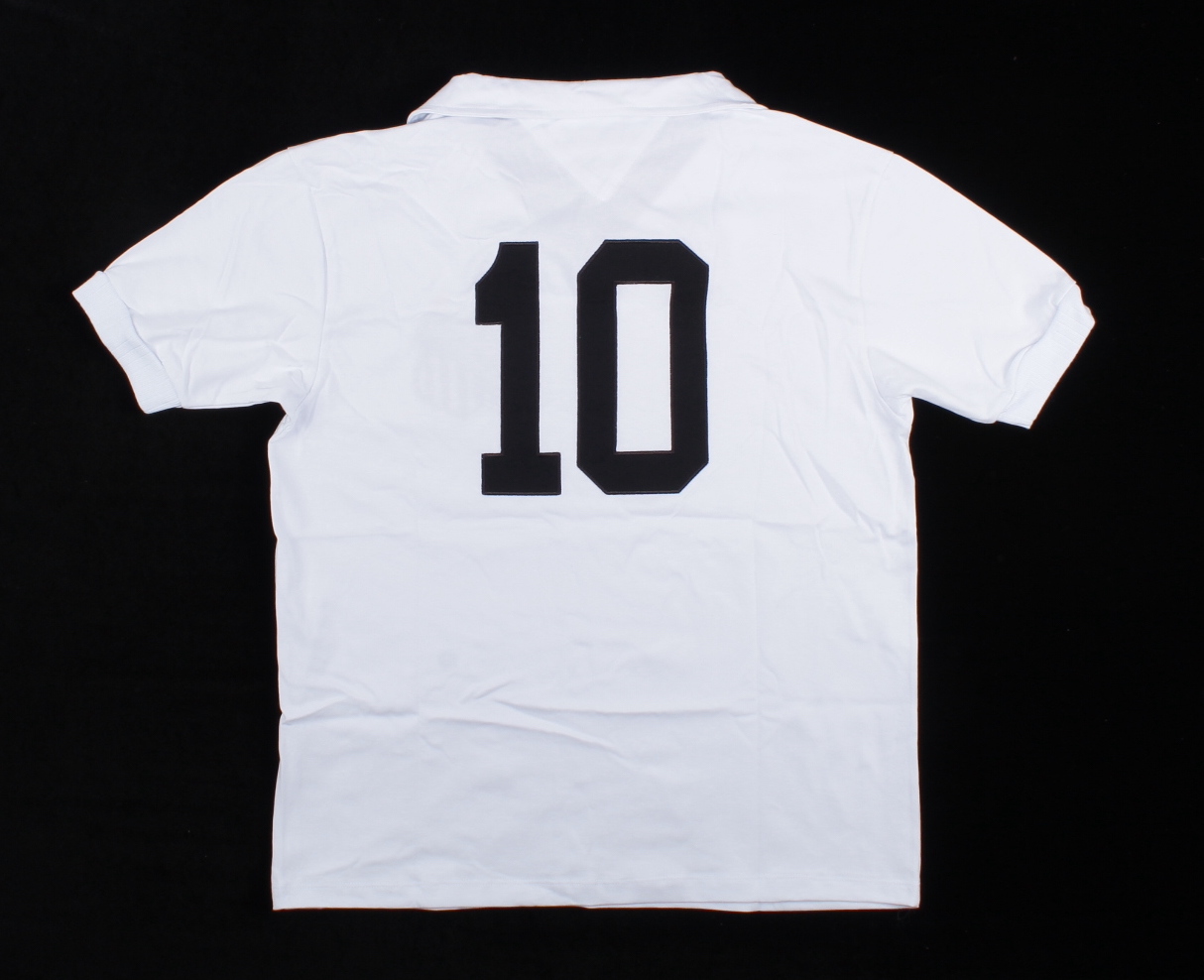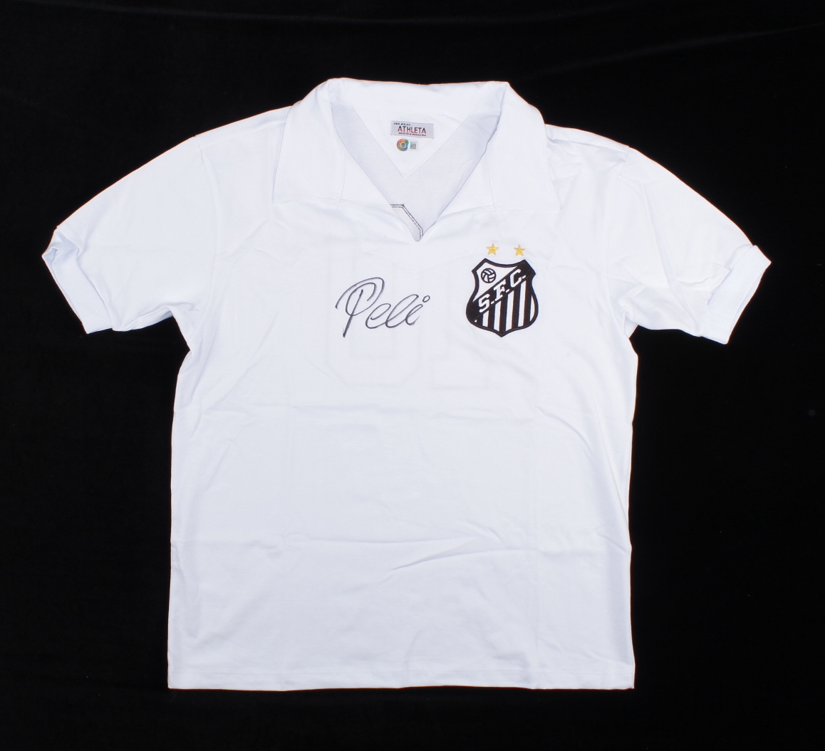 Athleta on-field style jersey. Everything is sewn on, size XL. Hand signed by Pele (Santos F.C., HOF).
