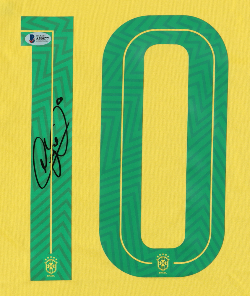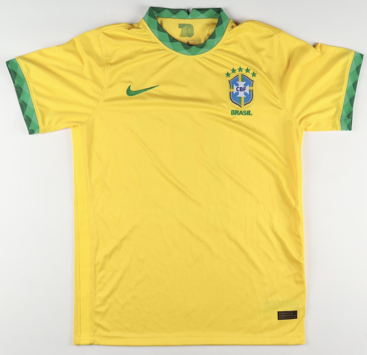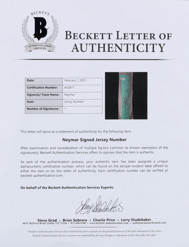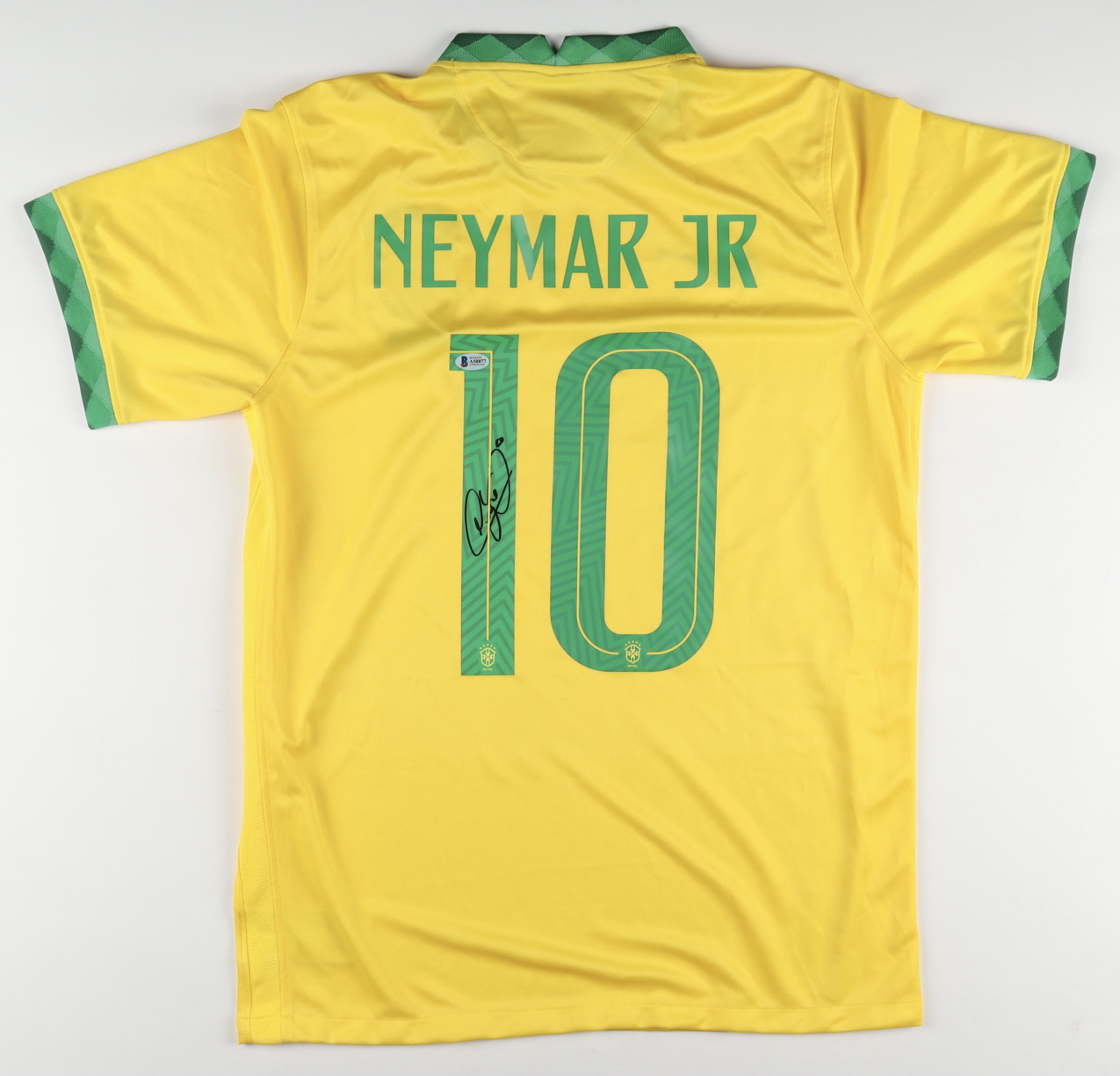 Nike on-field style jersey. Everything is printed on, size L. Hand-signed by Neymar.