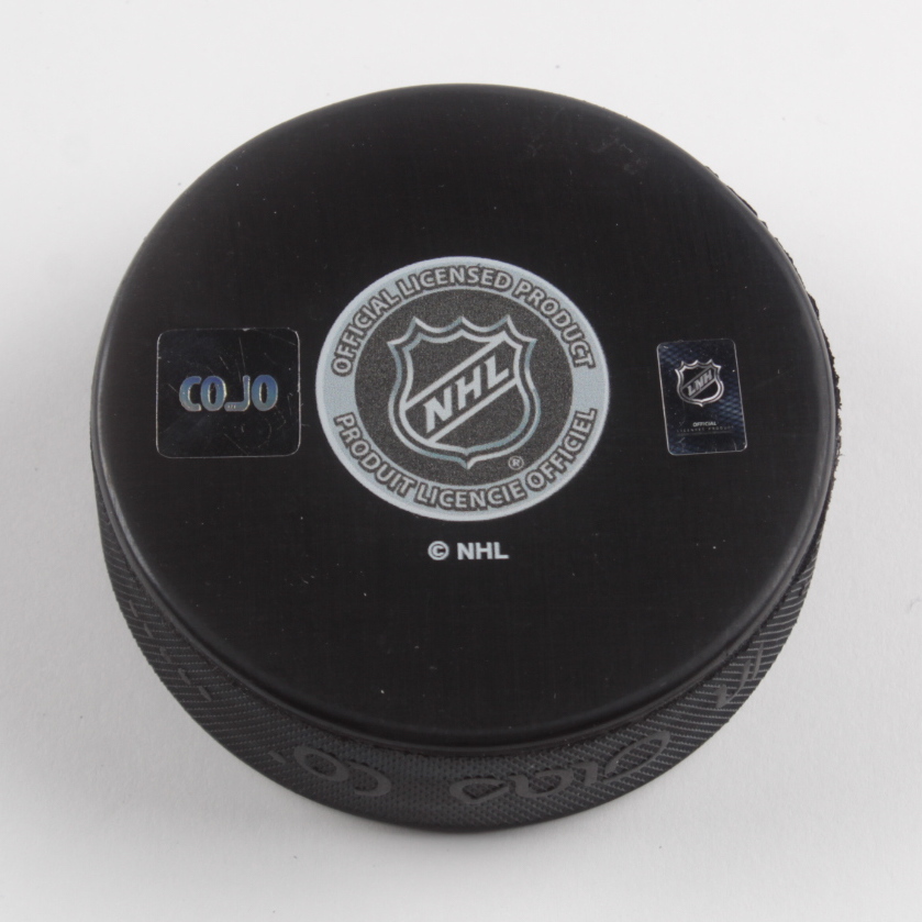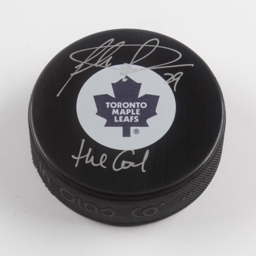 Toronto Maple Leafs logo hockey puck has been hand-signed and inscribed by Felix Potvin.