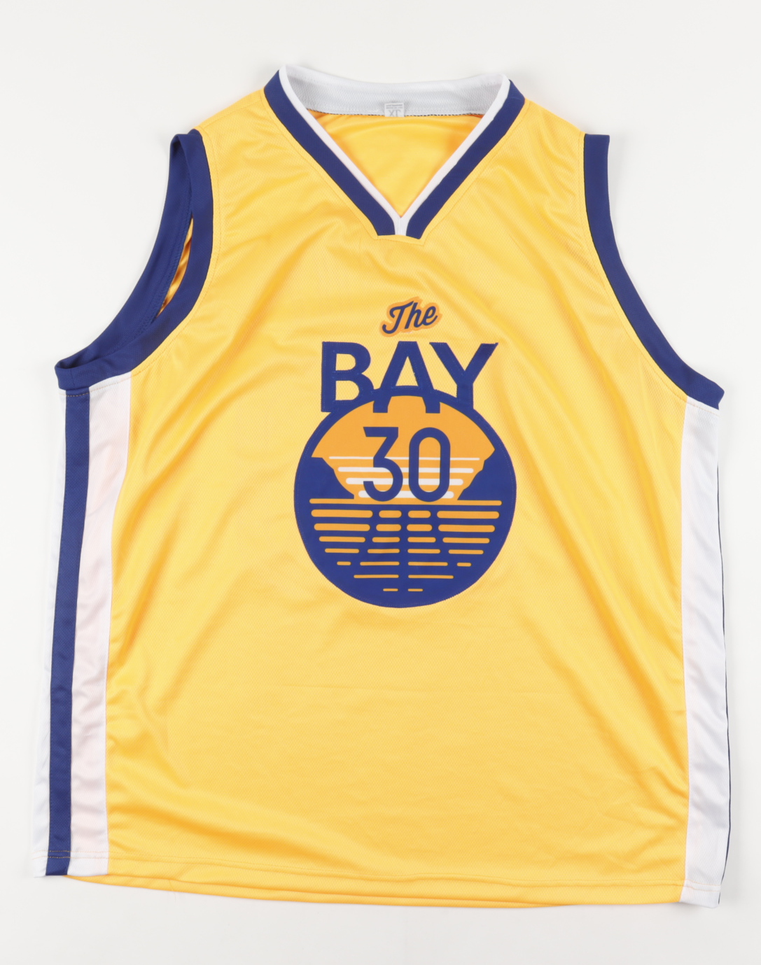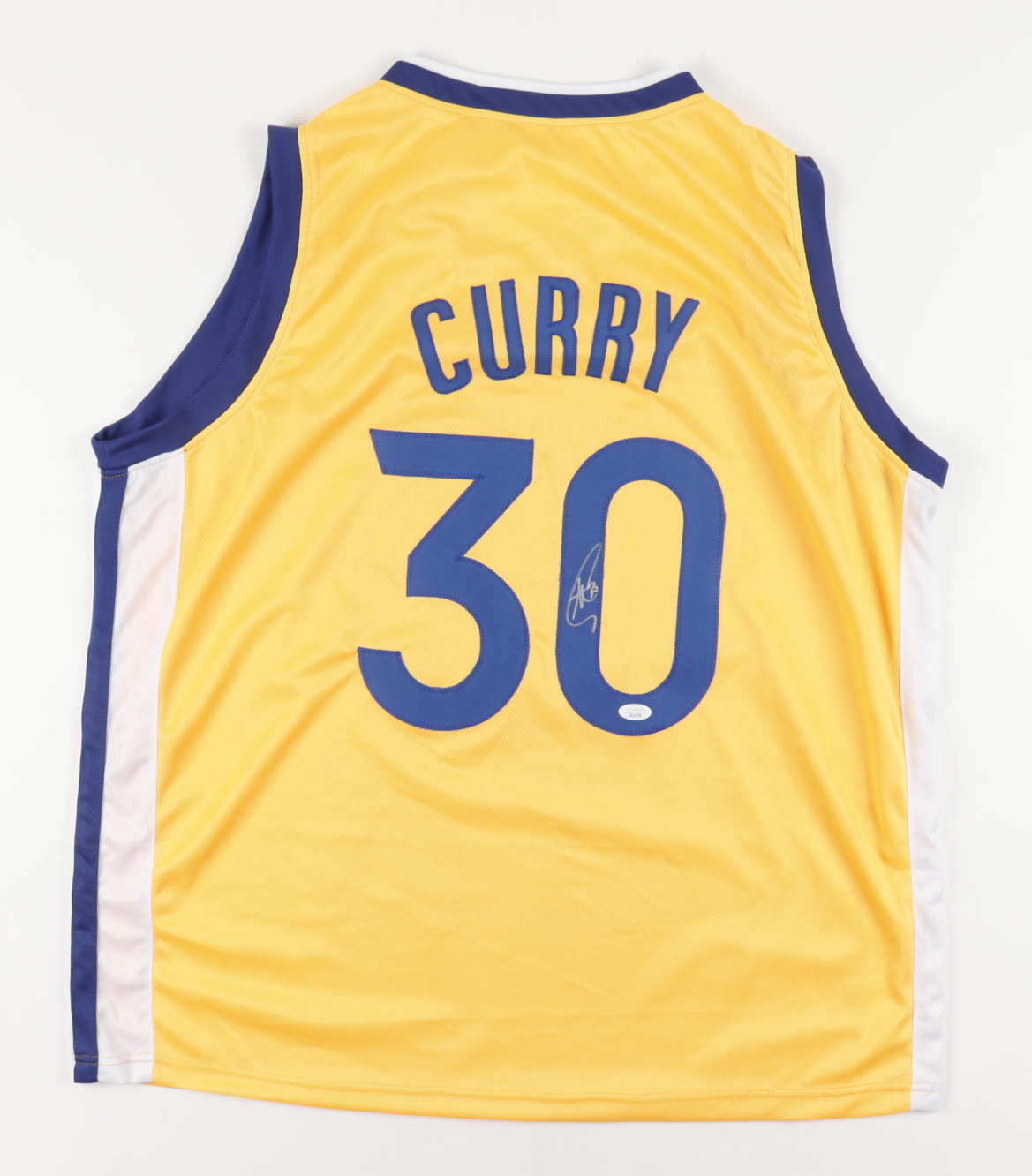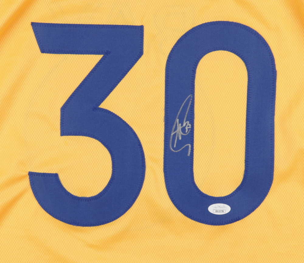 Custom on-court style jersey with everything sewn on, size XL. Jersey has been hand-signed by Stephen Curry.