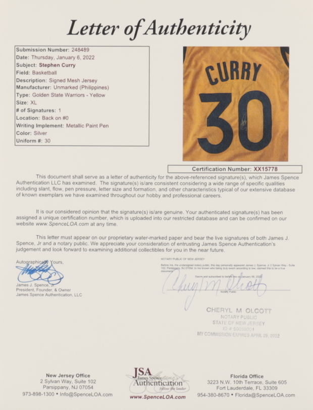 Stephen Curry Signed Jersey (JSA)