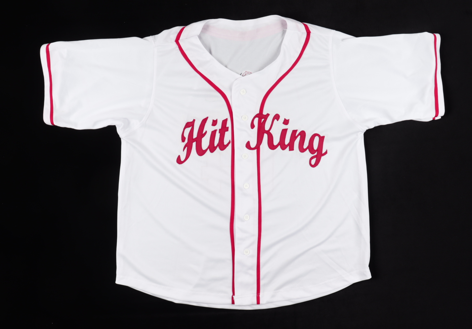 Custom on field style jersey. Everything sewn on, size XL. Hand signed by Pete Rose. Please note, there is a small stain on the front of the jersey.