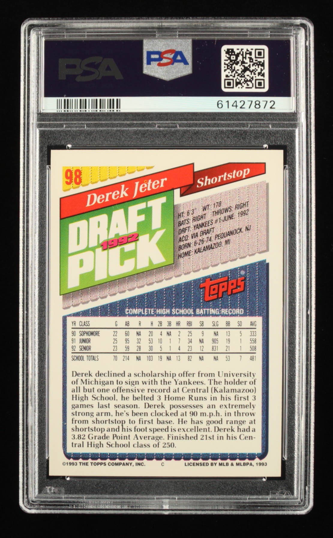 Derek Jeter 1993 Topps #98 RC (PSA 9)