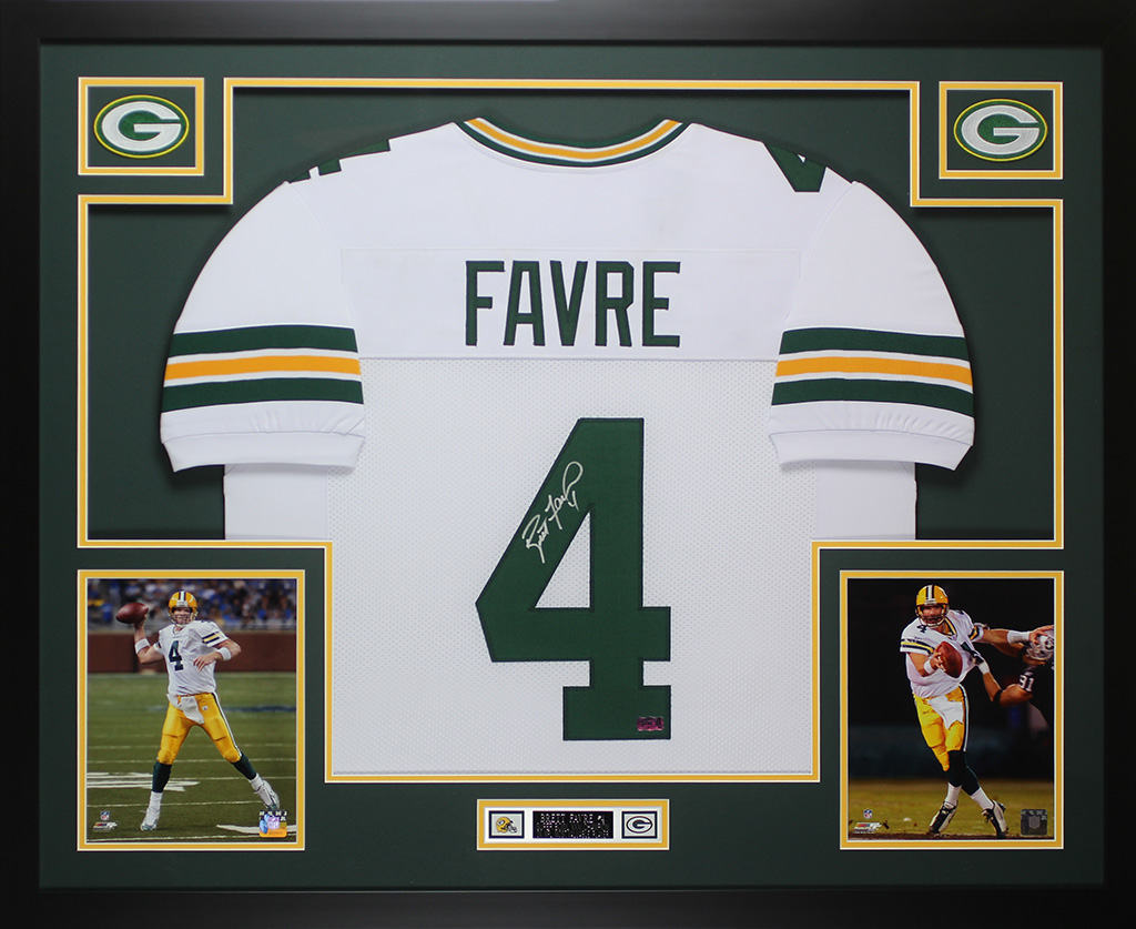Custom frame measures approximately 35" x 43" in size. Display features a jersey hand-signed by Brett Favre (HOF).