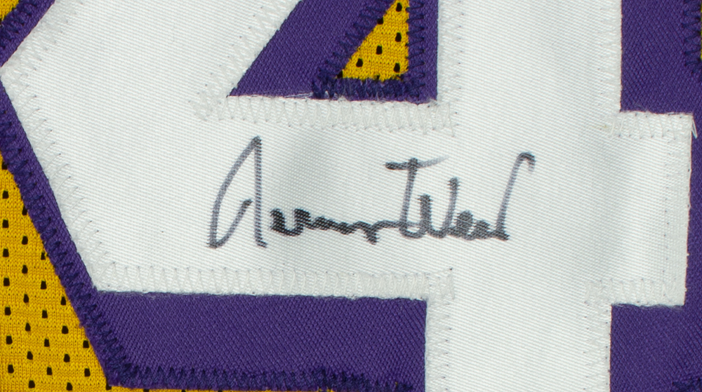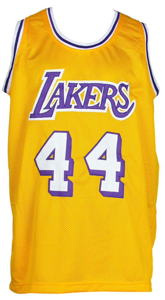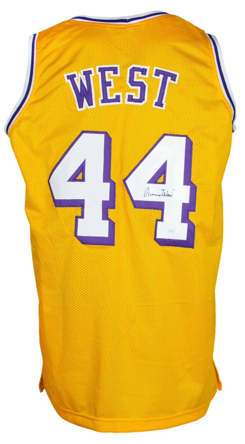 Custom on-court style jersey. Everything is sewn on, size XL. Hand-signed by Jerry West (HOF).