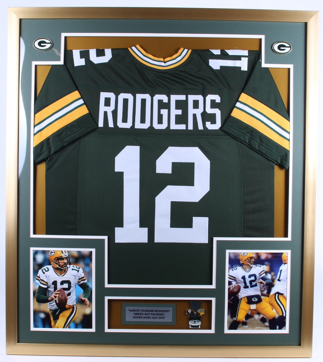 Aaron Rodgers Packers 32x36 Custom Framed Jersey Display with SBXLV Champs Pin