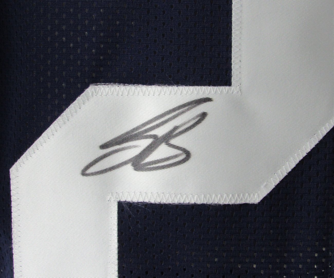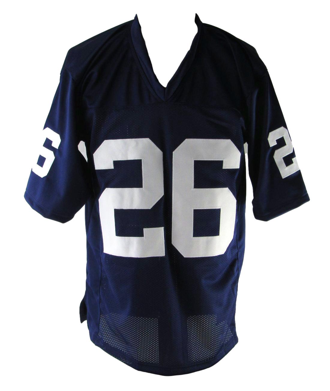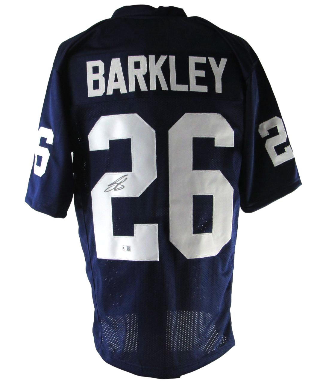 Custom on-field style jersey. Everything is sewn on, size XL. Hand-signed by Saquon Barkley.