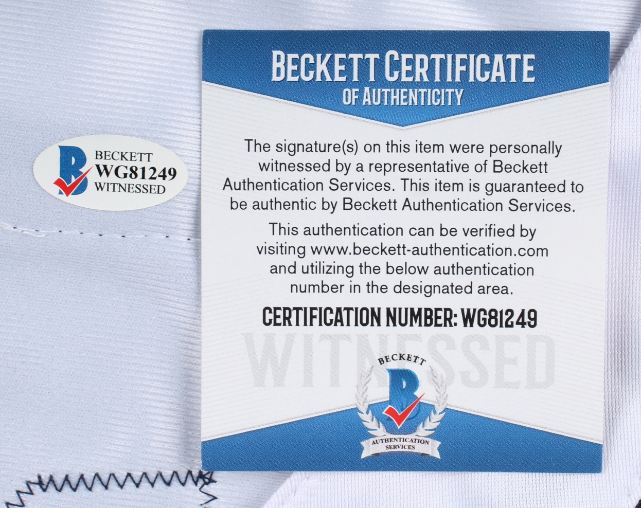 The lot / autograph(s) includes an official Beckett Authentication Services serially-numbered hologram and matching COA for authenticity purposes. The signing of this item was witnessed by Beckett.