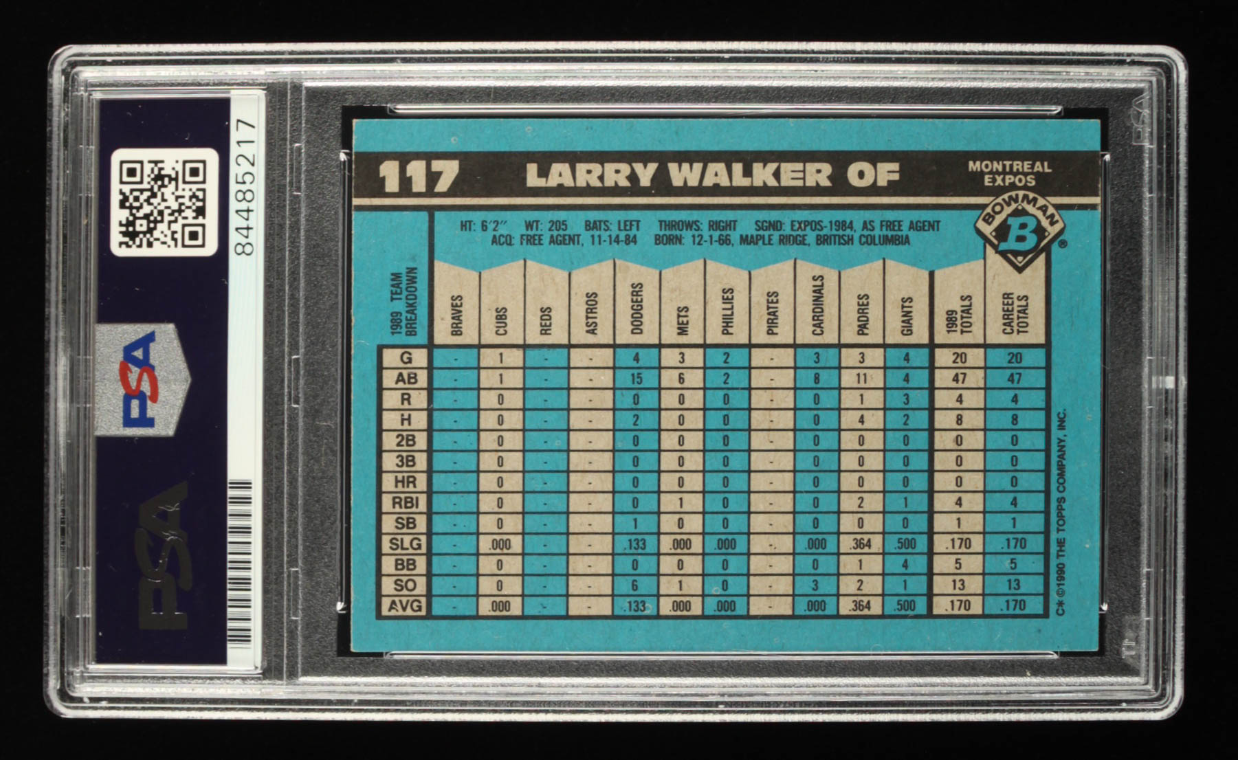 Larry Walker Signed 1990 Bowman #117 RC (PSA)