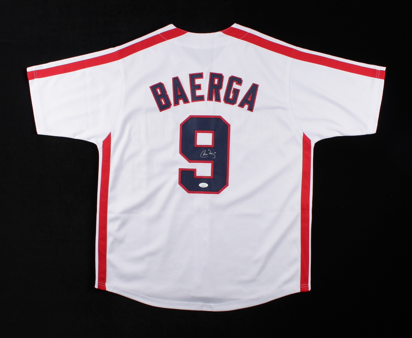 Custom jersey. Everything sewn on, size XL. Hand-signed by Carlos Baerga.