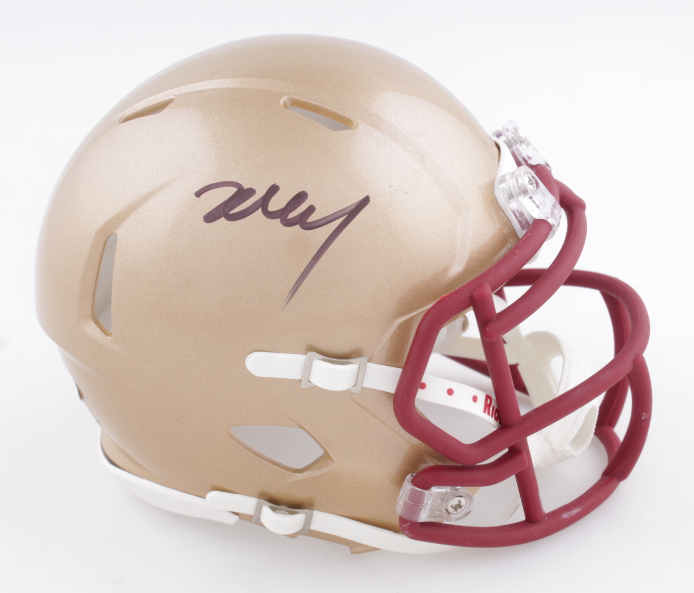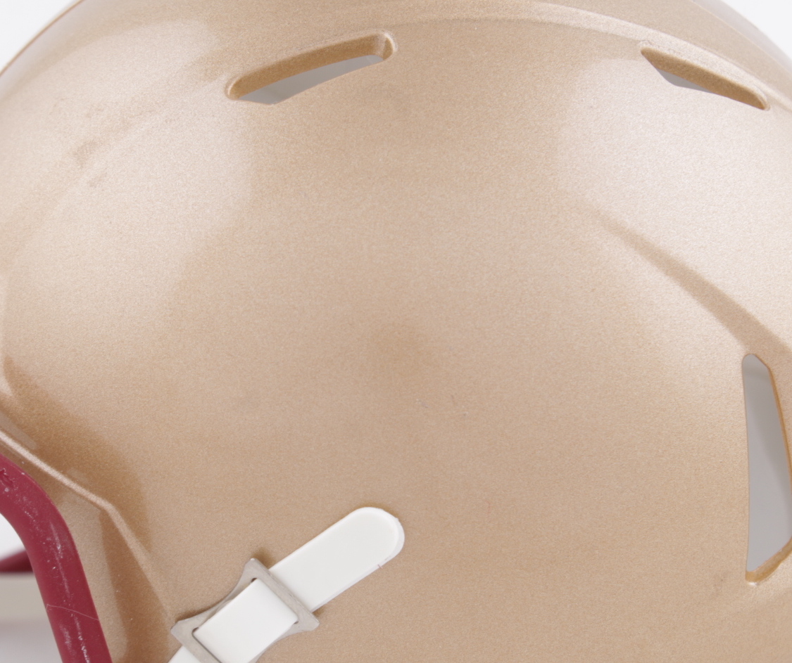 Riddell Boston College Eagles speed mini helmet. Hand-signed by Zay Flowers. Please note, minor scuffs and staining on helmet, see photos for details.