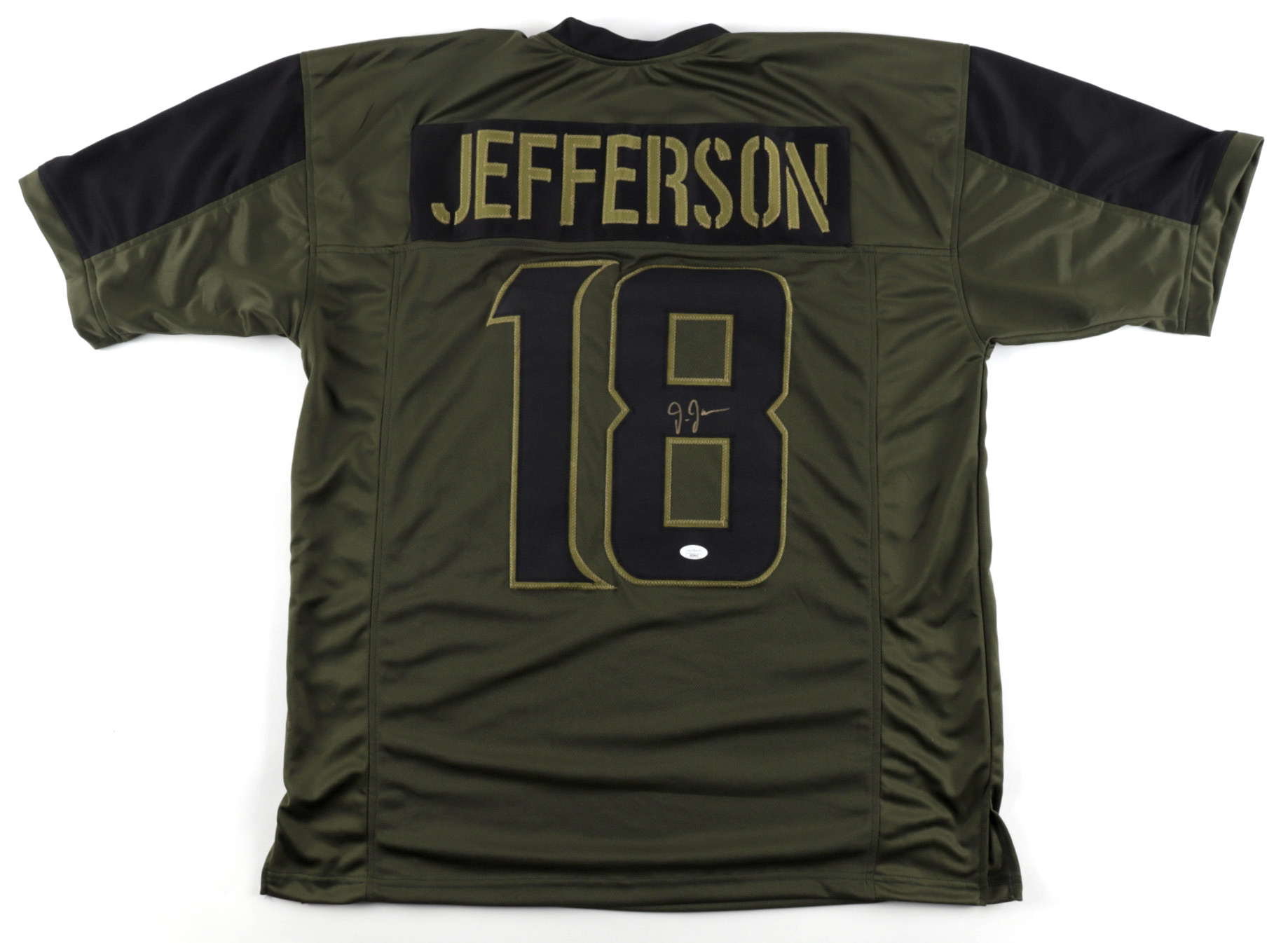 Custom on-field style jersey. Everything is sewn on, size XL. Hand-signed by Justin Jefferson.