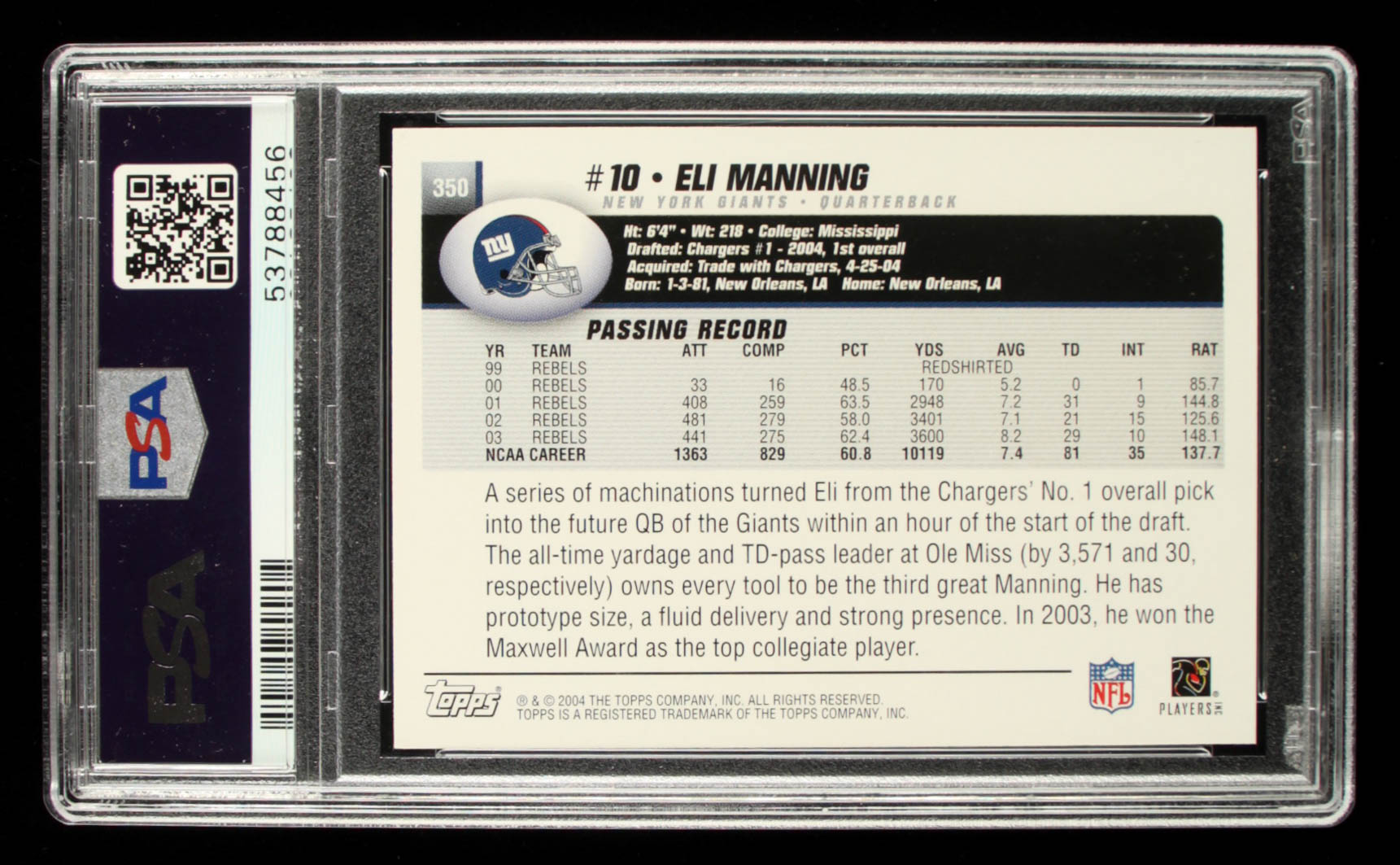 Eli Manning 2004 Topps #350 RC (PSA 10)