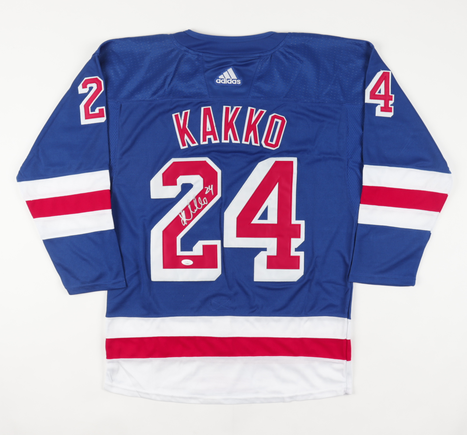 On-ice style jersey. Everything is sewn on, size 54. Hand-signed by Kaapo Kakko.