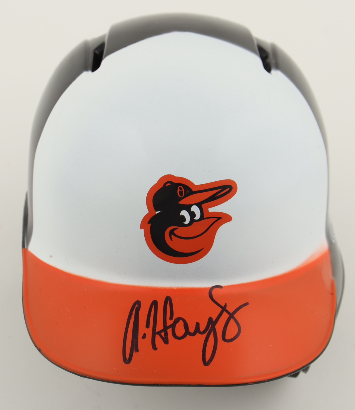 Rawlings Baltimore Orioles mini batting helmet. Hand-signed by Austin Hays.