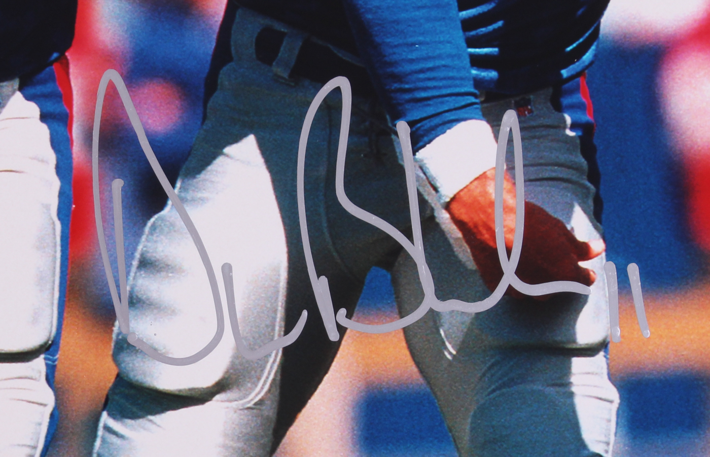 Photo measures 16"x20" in size and has been hand-signed in silver paint pen by Drew Bledsoe (Patriots).
