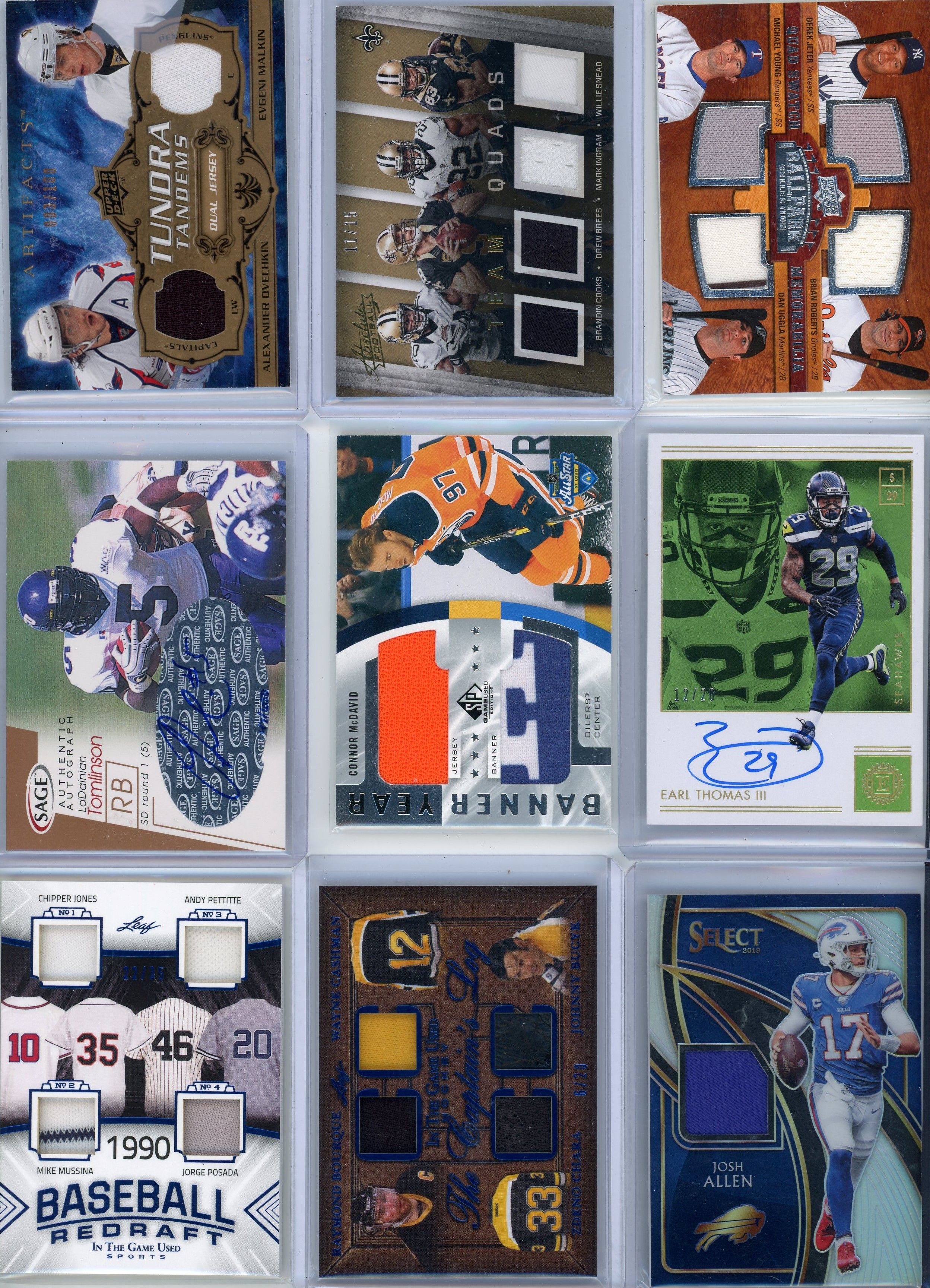 Tom Brady, Peyton Manning, Josh Allen, Russell Wilson, Lamar Jackson, Baker Mayfield, Jerry Rice, Randy Moss, Kyler Murray, Wes Welker, Earl Thomas, Ladainian Tomlinson, Drew Brees, Alvin Kamara, Terrell Davis.