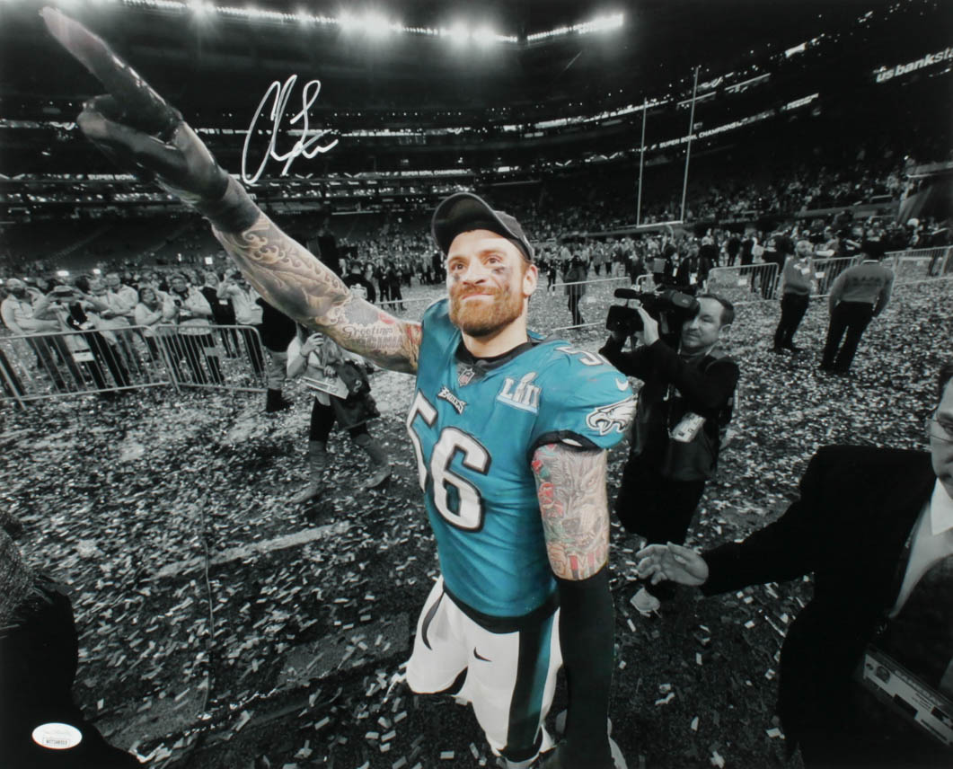 Photo measures 16" x 20" in size and has been hand-signed by Chris Long (Philadelphia Eagles).