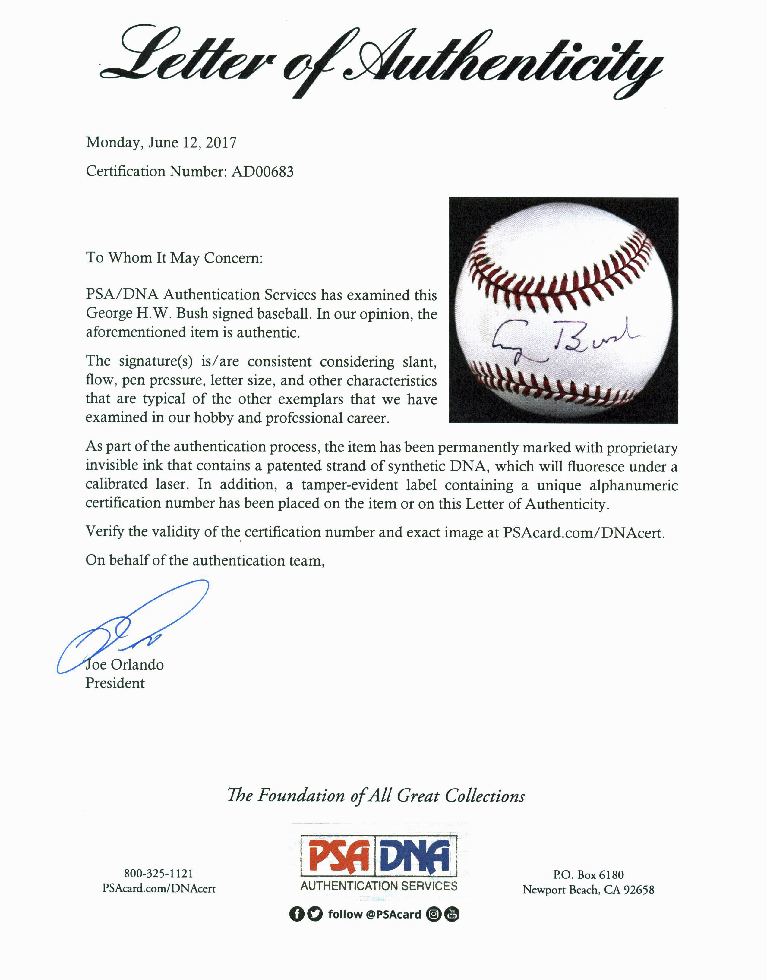 George H.W. Bush Signed OAL Baseball (PSA)