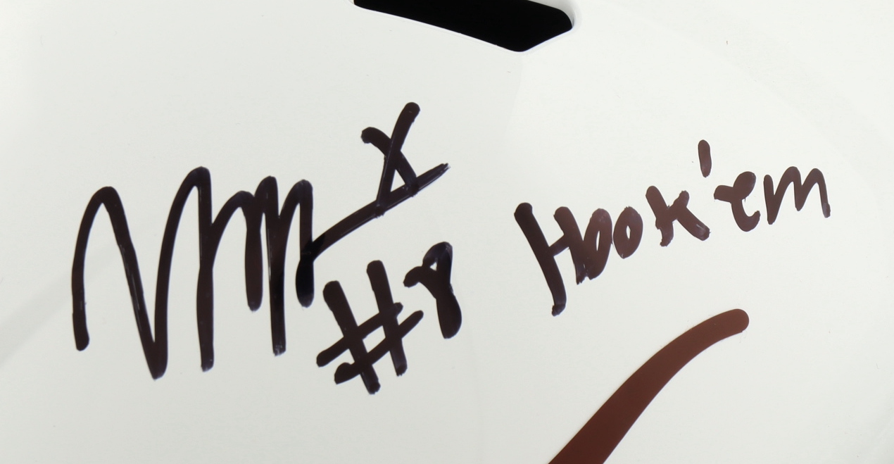 Riddell Texas Longhorns full-size replica speed helmet. Hand-signed and inscribed by Xavier Worthy.