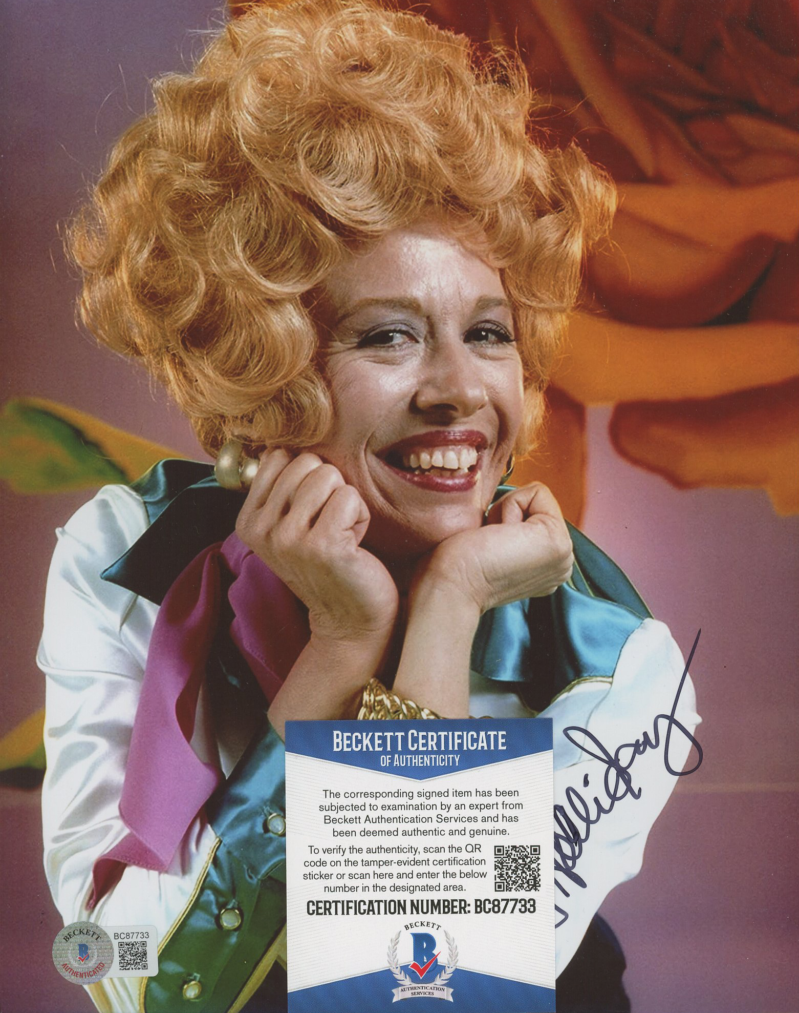 Photo measures 8" x 10" in size and has been hand-signed by Polly Holliday.