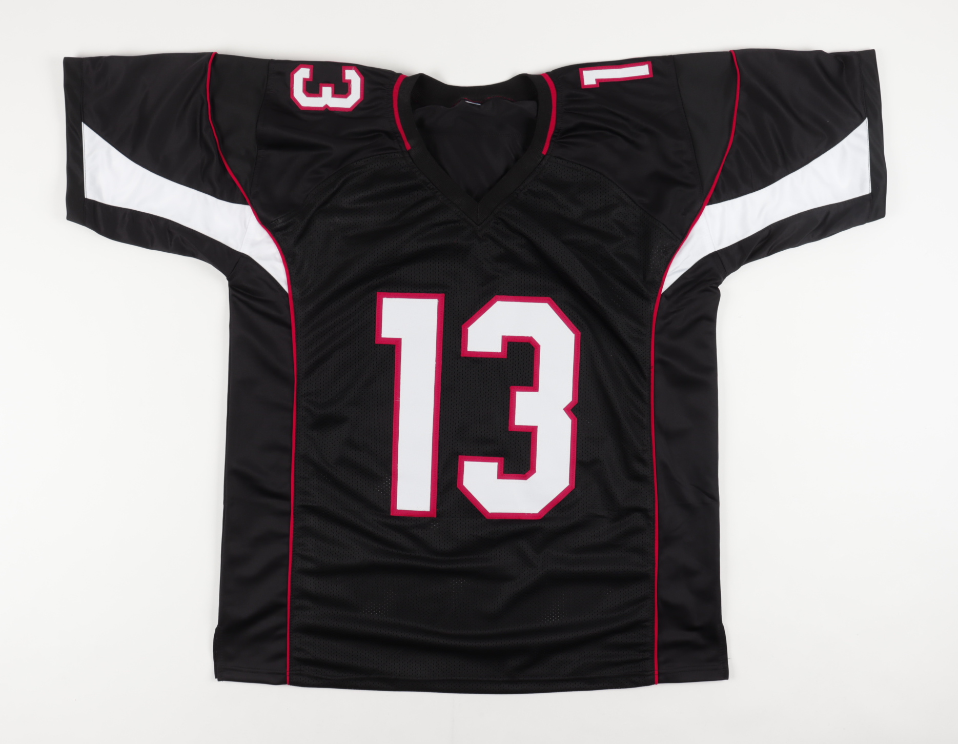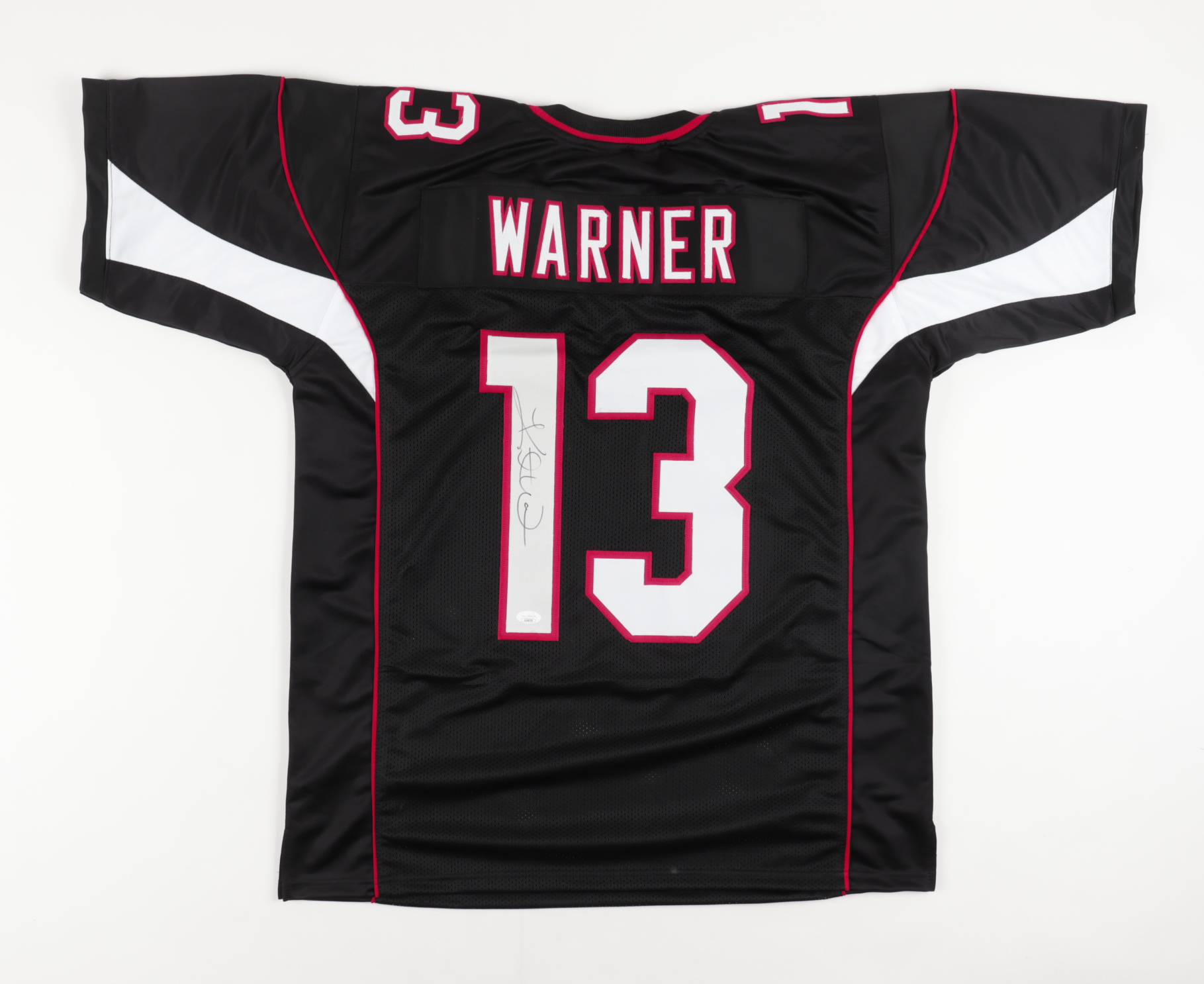 Custom on-field style jersey. Everything is sewn on, size XL. Hand-signed by Kurt Warner (HOF).