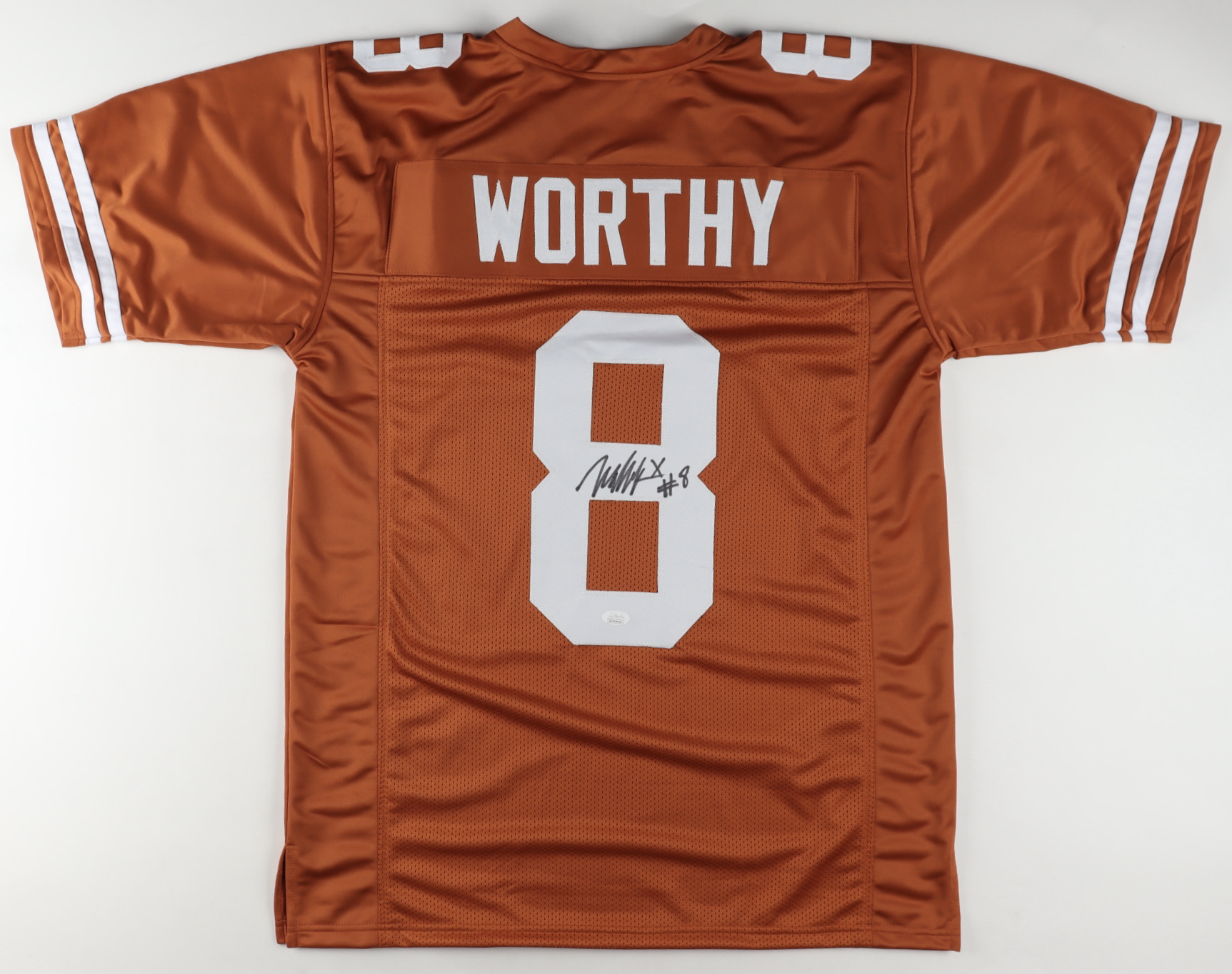 Custom on-field style jersey. Everything is sewn on, size XL. Hand-signed by Xavier Worthy.