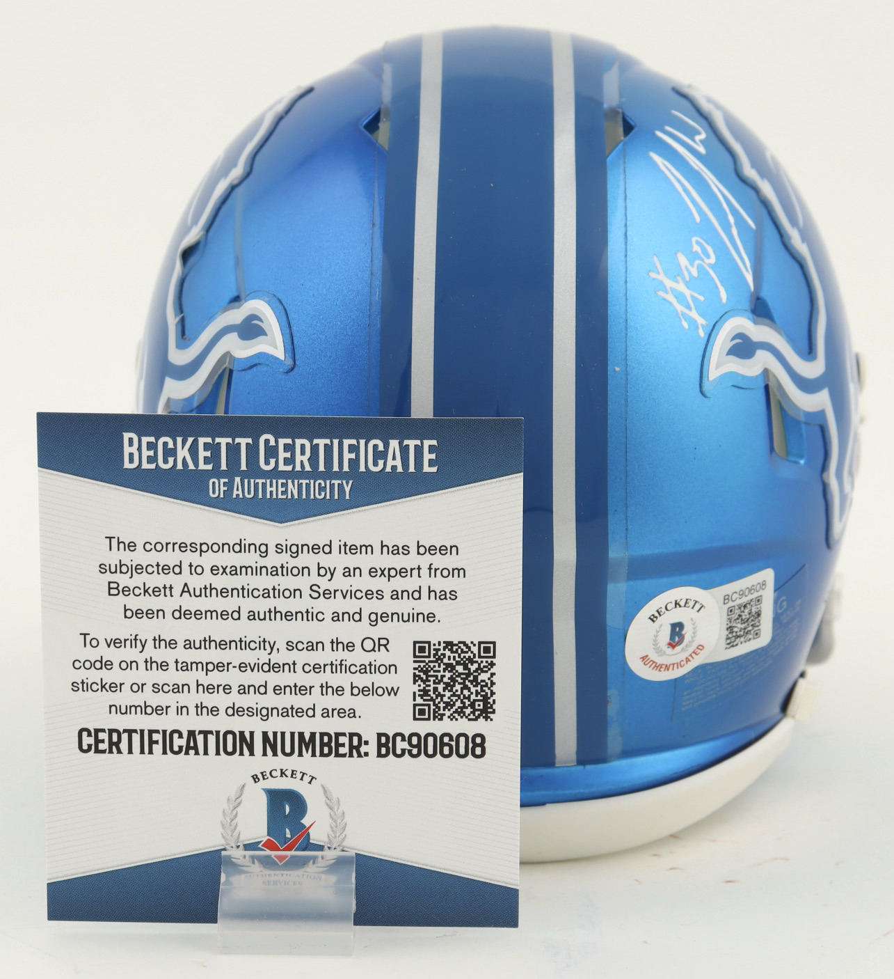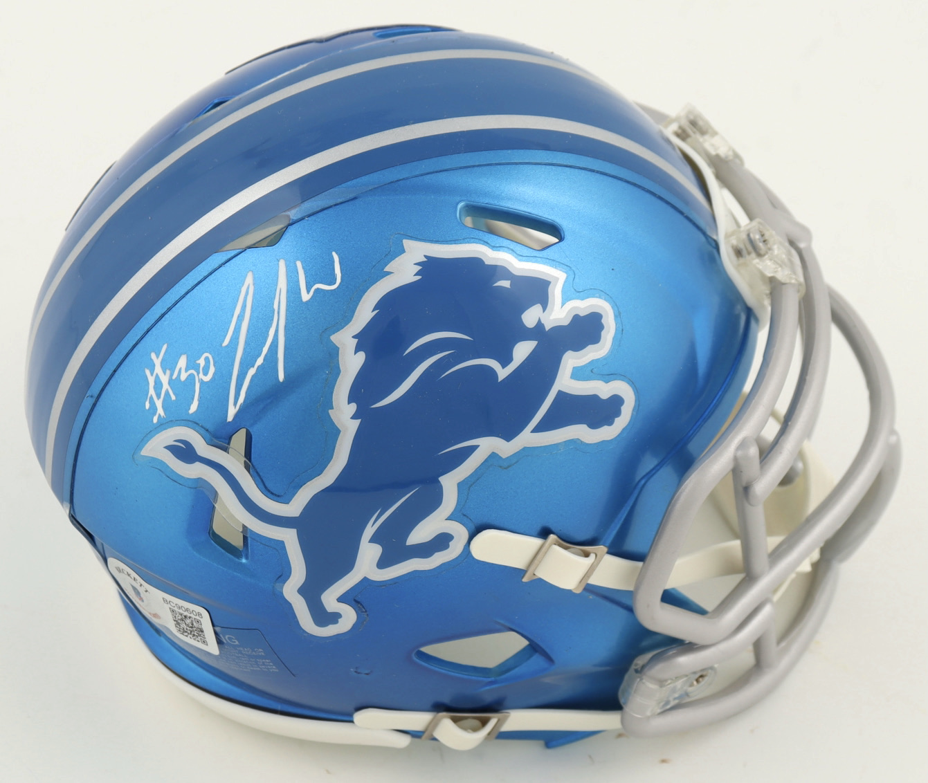 Riddell Detroit Lions Flash Alternate Speed mini helmet. Hand-signed by Jamaal Williams.