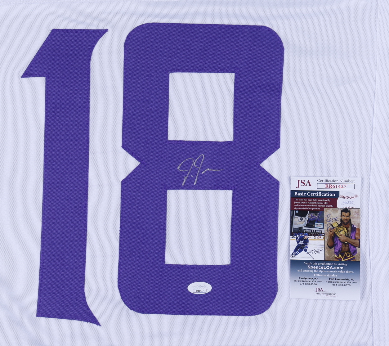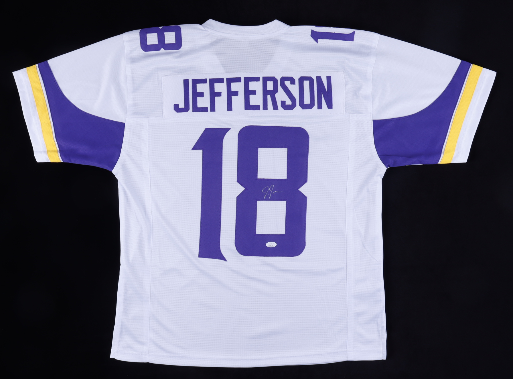 Custom on-field style jersey. Everything is sewn on, size XL. Has been hand-signed by Justin Jefferson.