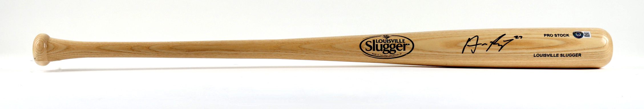 Rawlings Pro baseball bat has been hand-signed by Austin Riley (Atlanta Braves).