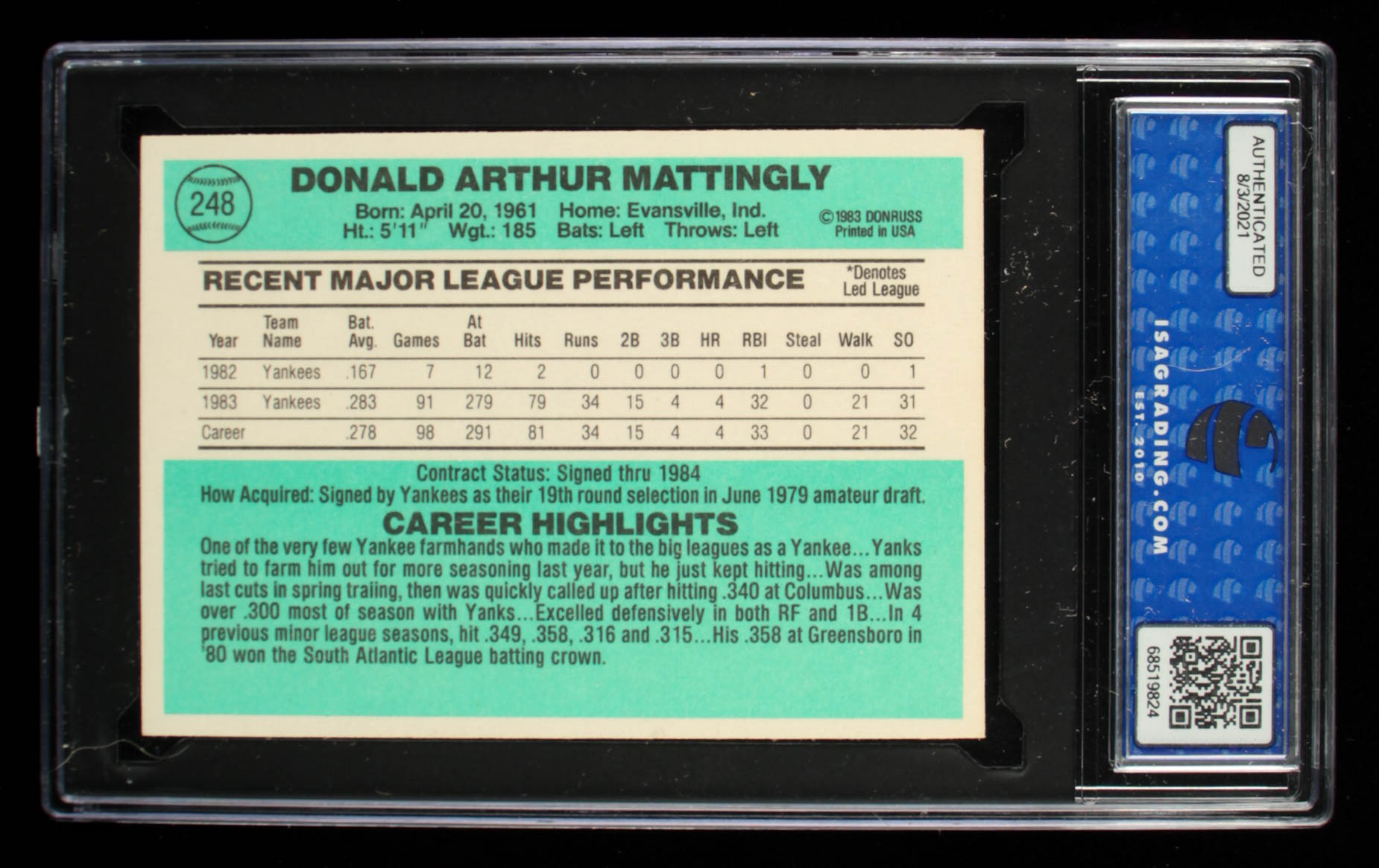 Don Mattingly 1984 Donruss #248 RC (ISA 9)
