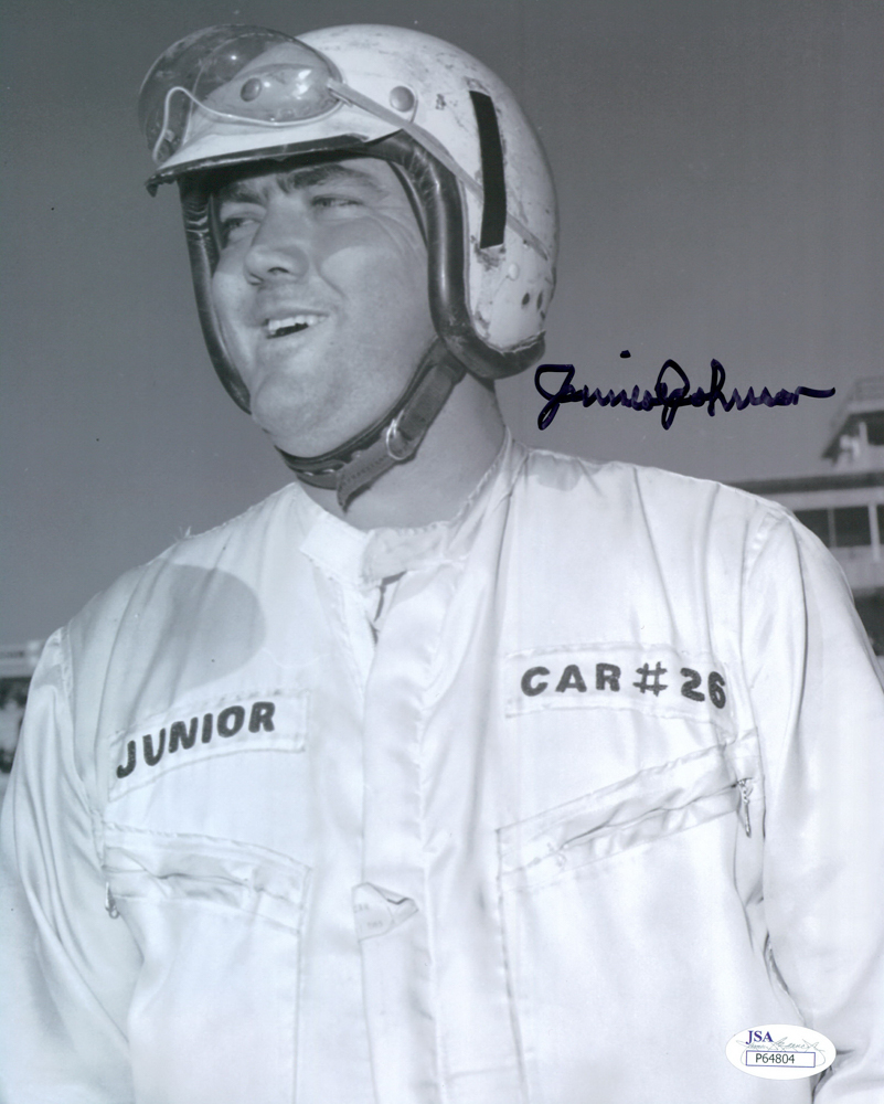 Photo measures 8" x 10" in size and has been hand-signed in black felt-tip pen by Junior Johnson.