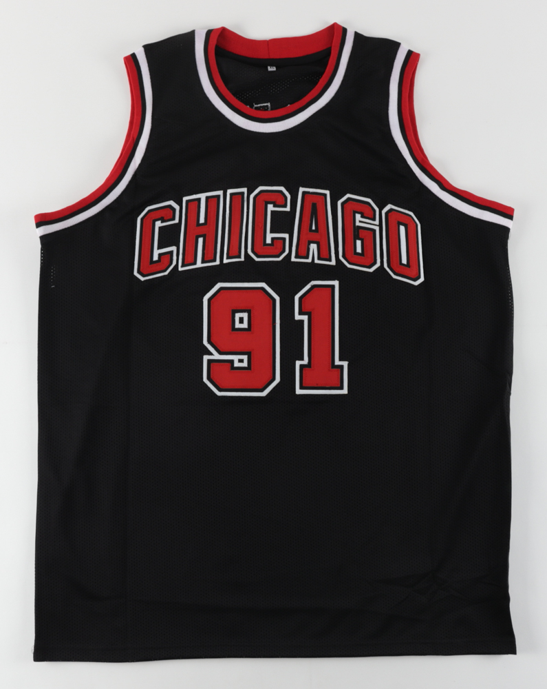 Custom on-court style jersey. Everything is sewn on, size XL. Hand-signed by Dennis Rodman (HOF).