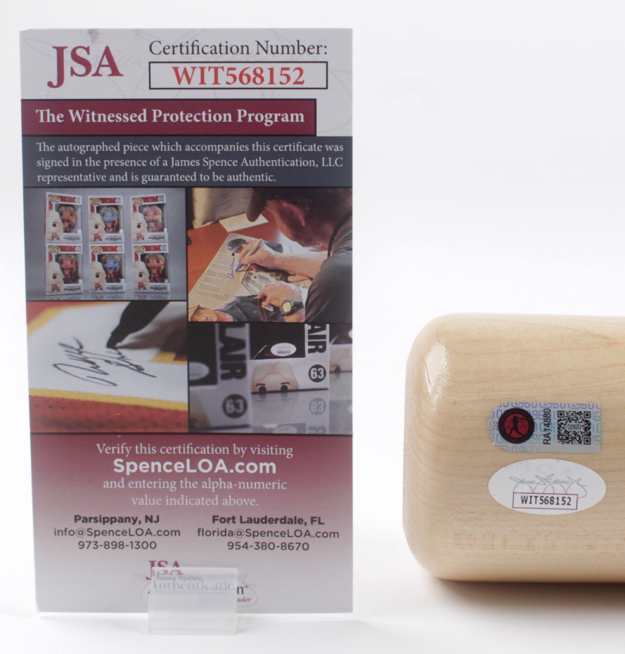 The lot / autograph(s) includes an official James Spence Authentication (JSA) hologram and matching COA, as well as an official Ronald Acuna Jr. player hologram for authenticity purposes. The signing of this item was witnessed by JSA.