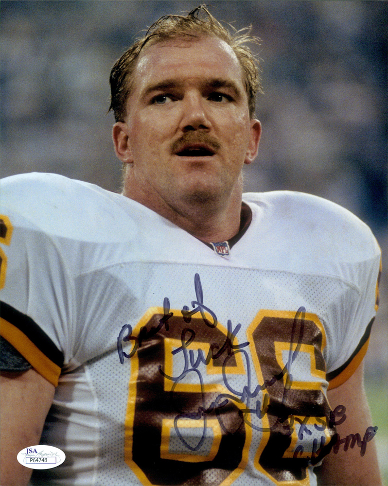 Joe Jacoby Signed Redskins 8x10 Photo Inscribed "Best of Luck" & "3x SB Champs" (JSA COA)
