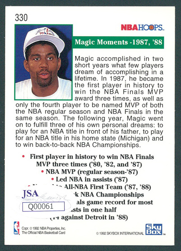 Magic Johnson Signed 1992 SkyBox #330 (JSA COA)