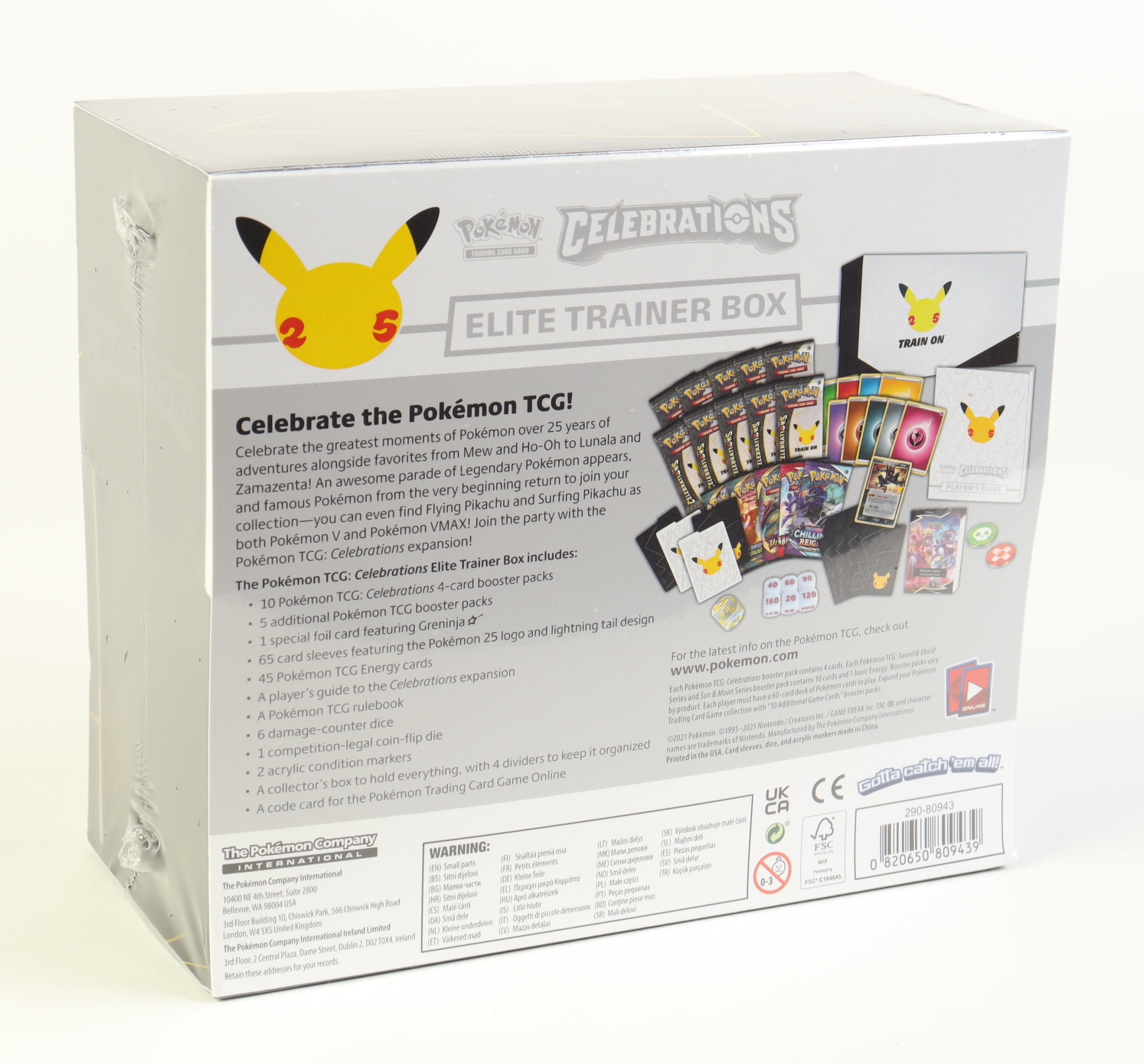 Celebrate the Pokémon TCG! Celebrate the greatest moments of Pokémon over 25 years of adventures alongside favorites from Mew and Ho-Oh to Lunala and Zamazenta! An awesome parade of Legendary Pokémon appears, and famous Pokémon from the very beginning return to join your collection—you can even find Flying Pikachu and Surfing Pikachu as both Pokémon V and Pokémon VMAX! Join the party with the Pokémon TCG: Celebrations expansion!