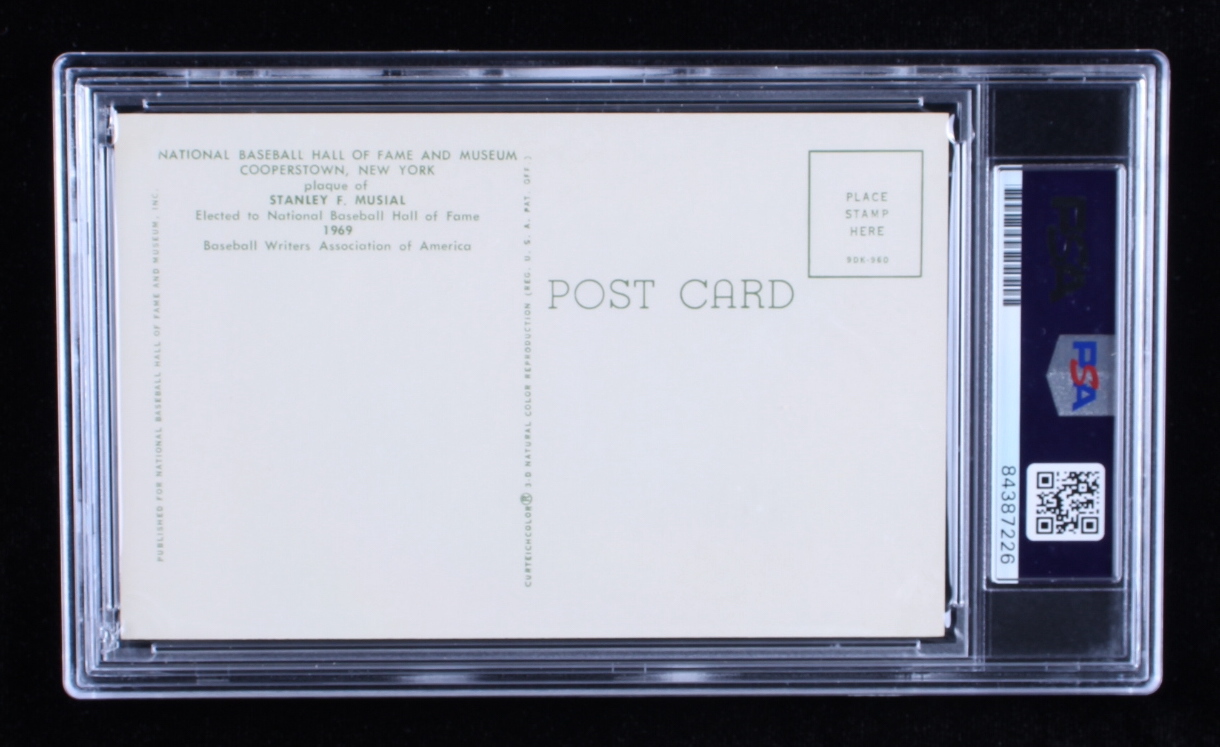 Stan Musial Signed Hall of Fame Plaque Postcard (PSA)